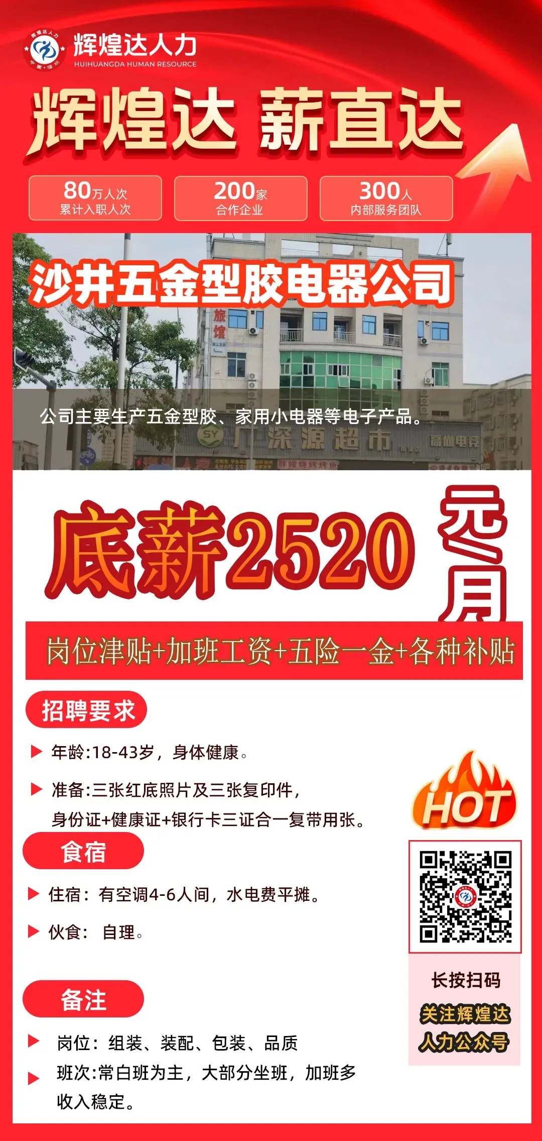 深圳宝安住友电子招小时工,20元每小时,长白班男女不限,包吃包住,工价持续6个月适合长期做,购买社保,薪资6000左右