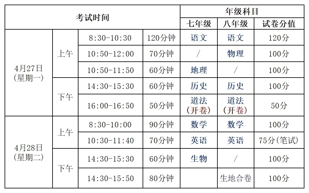 深圳福田/南山/罗湖区初一、初二年级期中考试、初三二模时间陆续公布