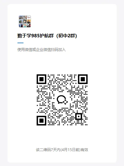 扫描下方二维码入群即可领取期中考试真题和初中同步每日一练,后续会有中考资讯和期中期末真题分享,还有各校开放日或自主招生的消息分享。欢迎各位家长在本群讨论学习相关的话题。