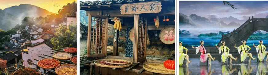 ●用餐特色:4 早 4 正,品尝中国八大菜系之徽菜,升级特色黄梅戏宴+徽州臭鳜鱼宴+徽州农家宴
