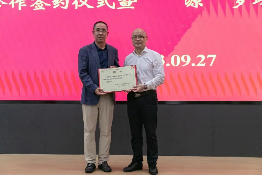 能源学院院长罗小兵教授为陈秀峰校友颁发特聘教授聘书。
