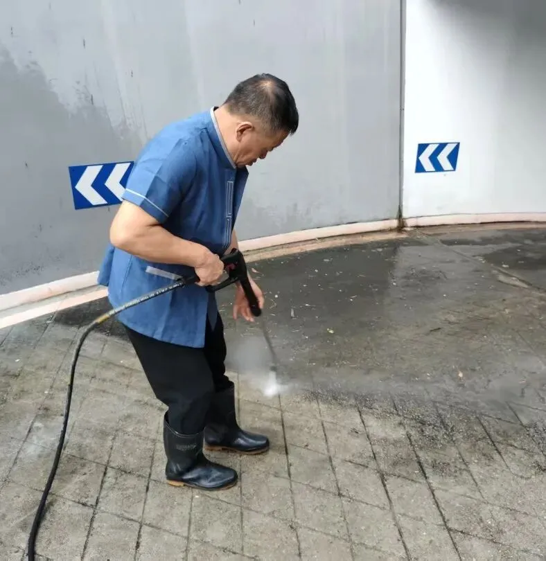 7、3月,完成进出口车道、外围地面高压水枪冲洗;