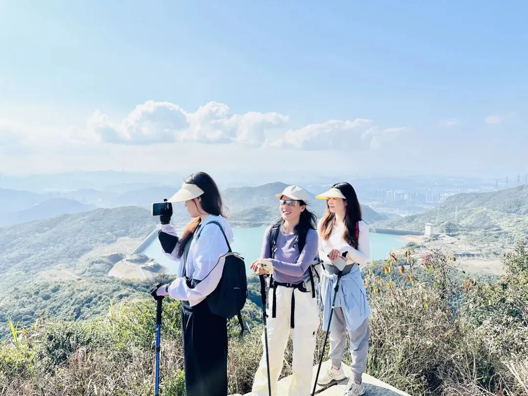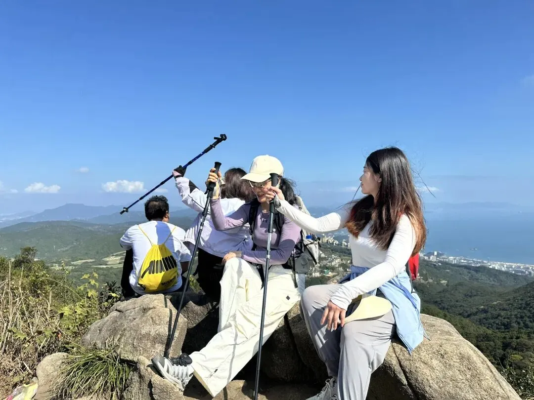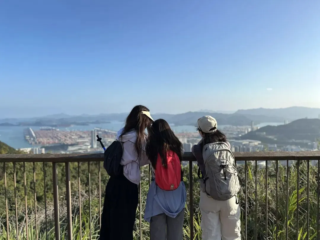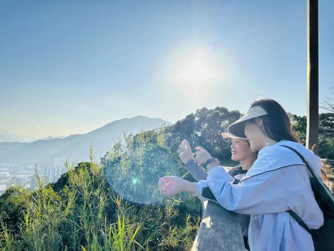 从登山口到梅沙尖顶约需1.5-2小时。登顶后360度开阔视野,可俯瞰盐田港、大小梅沙海湾和三洲田水库。山顶有新建的遮荫平台,适合停留拍照休息。