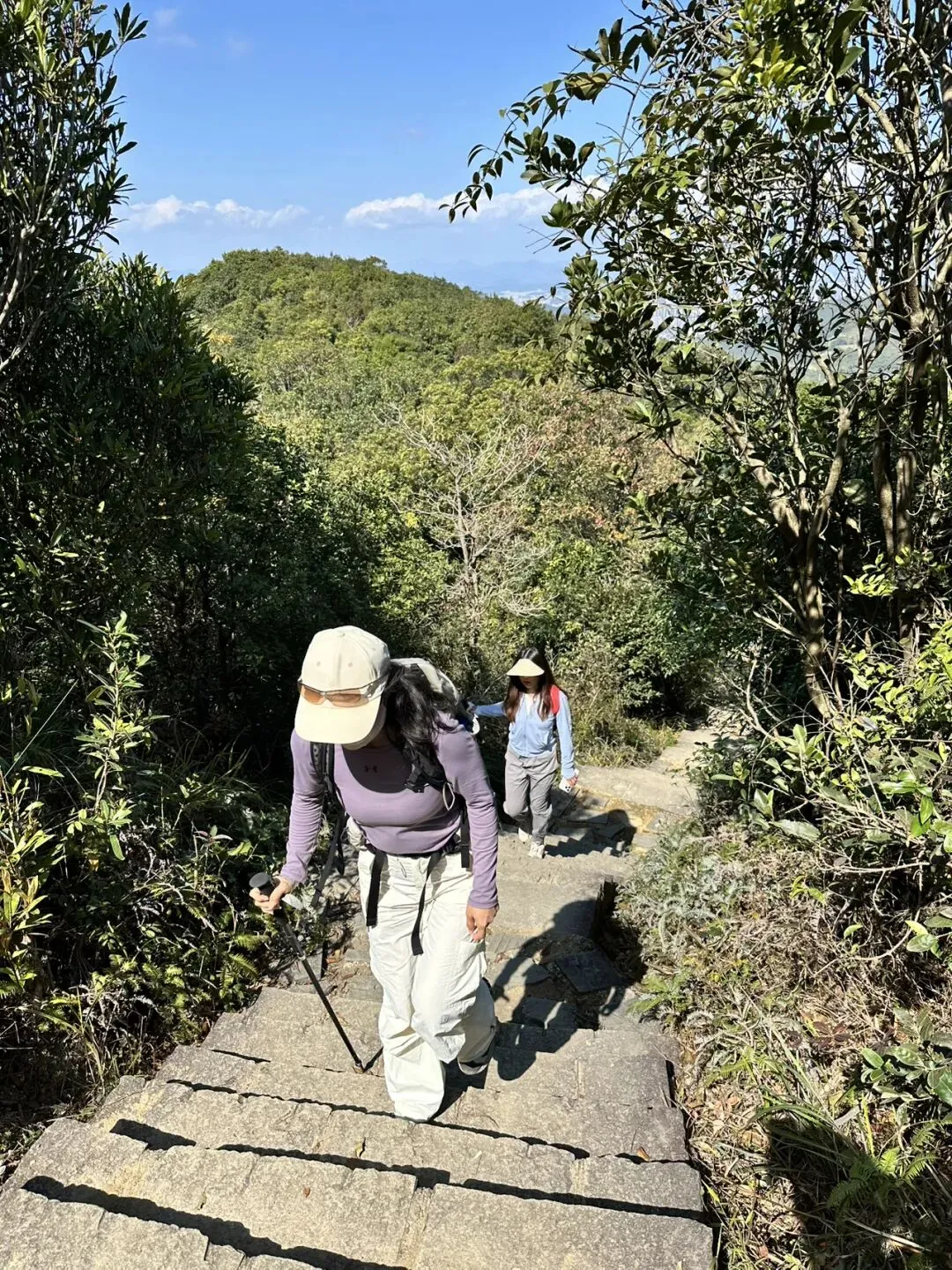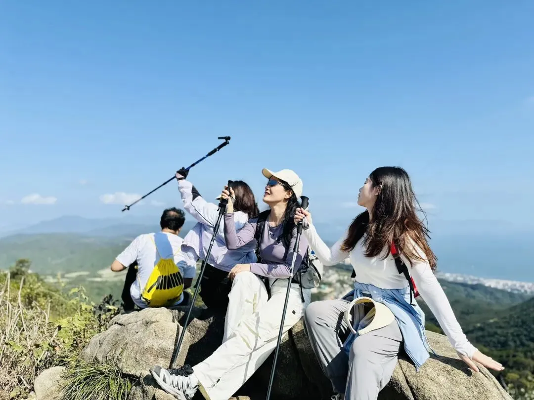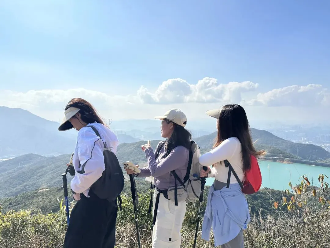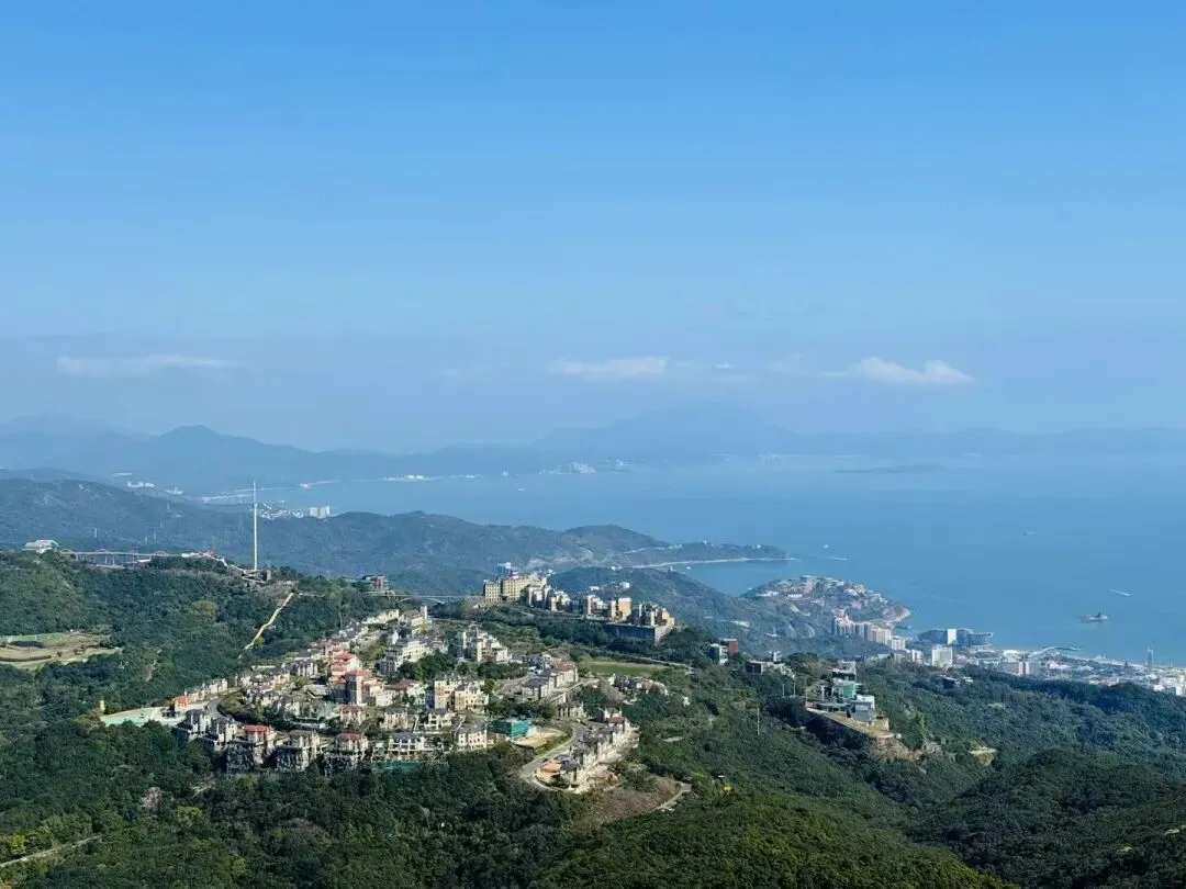 从登山口到梅沙尖顶约需1.5-2小时。登顶后360度开阔视野,可俯瞰盐田港、大小梅沙海湾和三洲田水库。山顶有新建的遮荫平台,适合停留拍照休息。