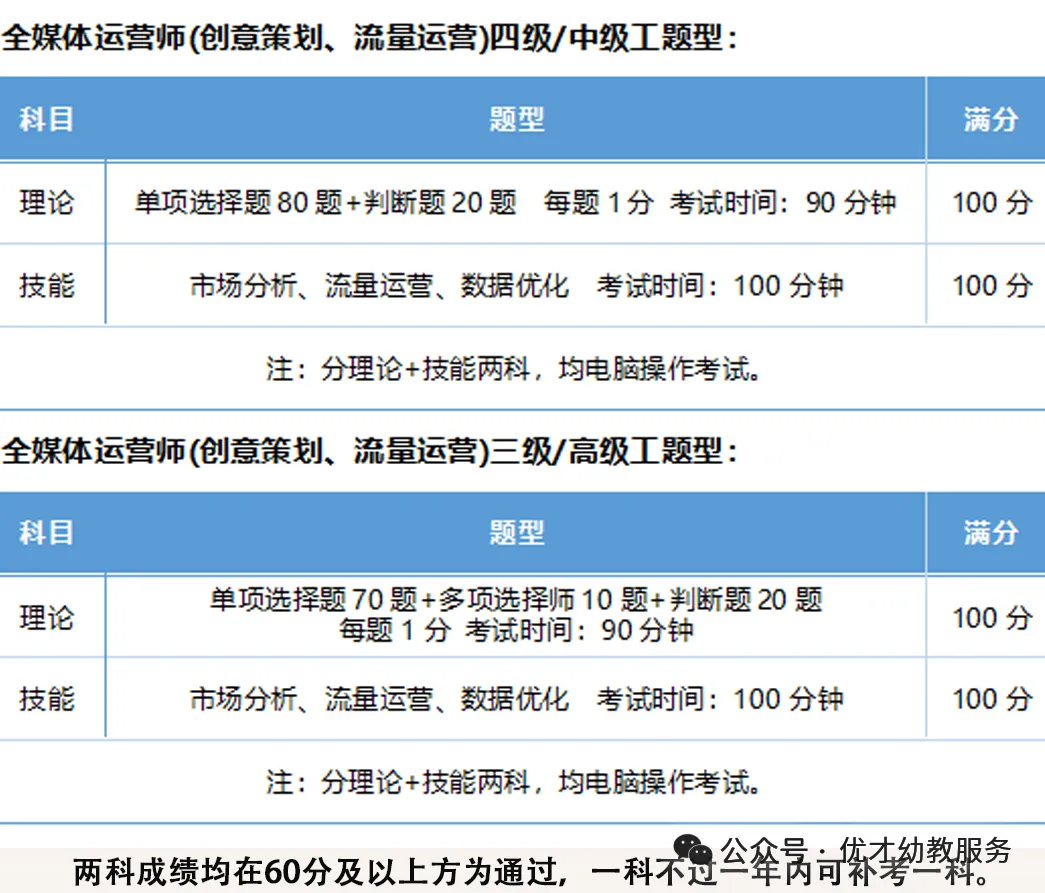 内容作者、视频剪辑师、平面设计师、各类直播公会主等。考核2门,分为理论知识考试、操作技能考核;
