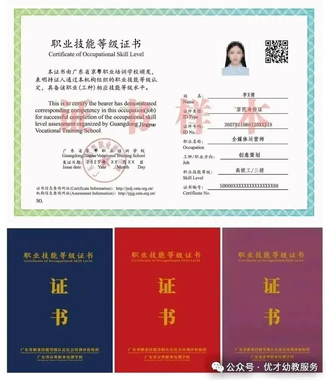 考试合格者,由人力资源和社会保障部认定的评价机构颁发《全媒体运营师》等级证书,该证书可在国家职业技能等级证书平台查询:http://jndj.osta.org.cn/,全国通用。选择机构:个人无法直接报考。