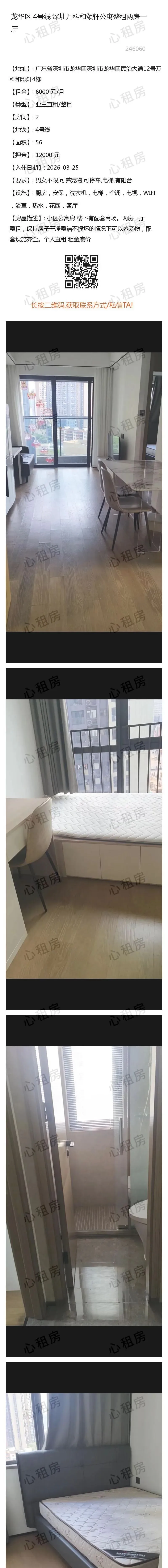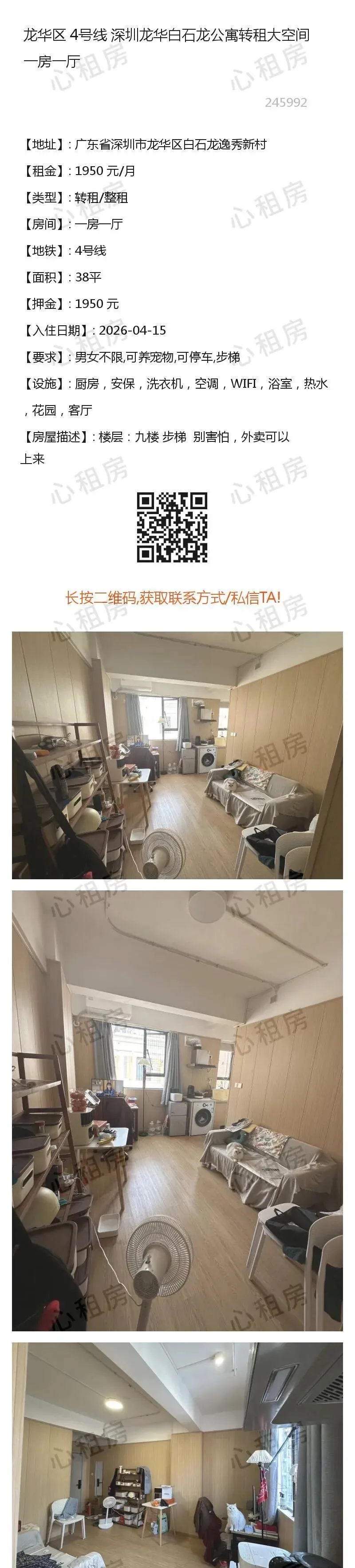 深圳租房【龙华2则】房源①:4号线深圳龙华白石龙转租大空间一房一厅1950元/月;房源②:…