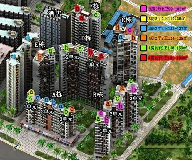 - 分布:A、B、C栋核心单元,1梯2户/1梯3户配置