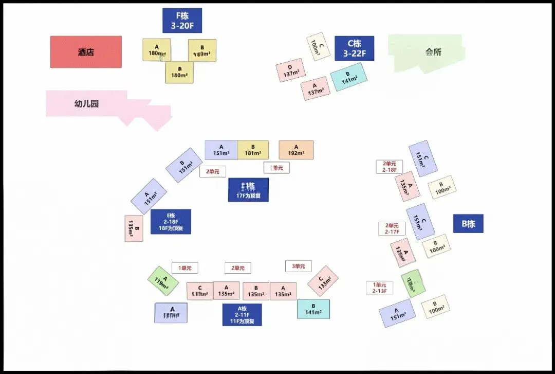 - 特点:部分顶层为复式设计(如192㎡顶复),层高优势明显,可拓展空间大,部分带独立露台。
