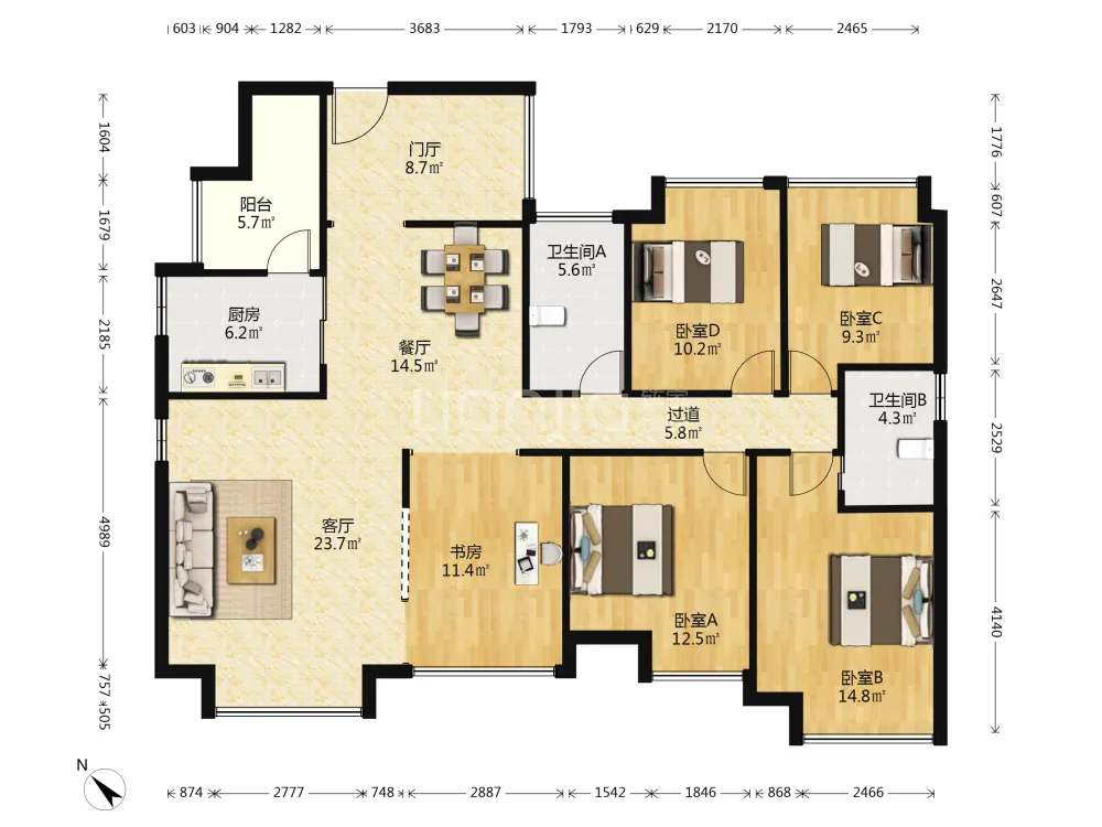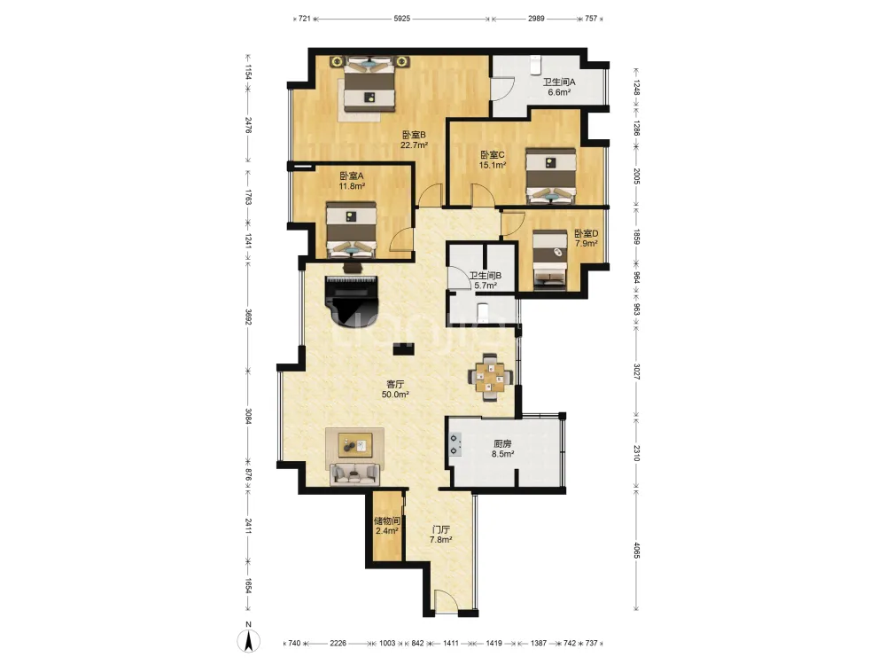 2. 130-150㎡ 四房两厅两卫(社区主力改善户型)