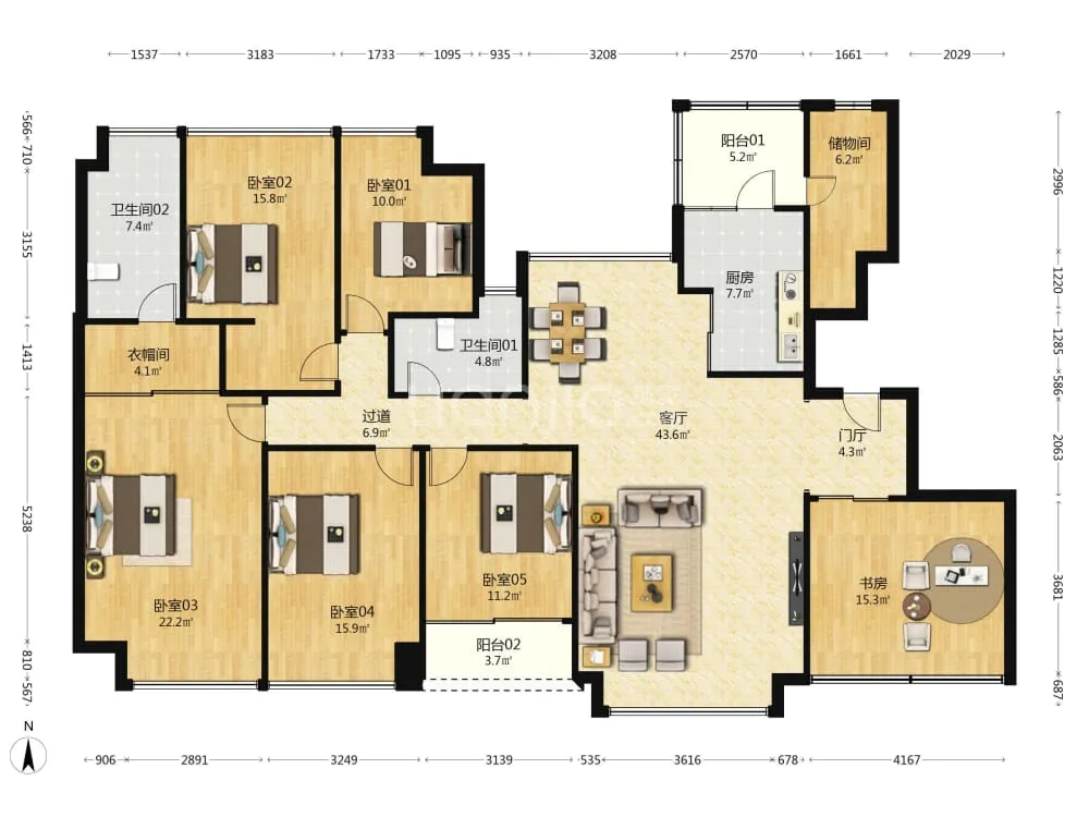 2. 大户型优先考虑双阳台/大阳台设计,兼顾功能与景观;