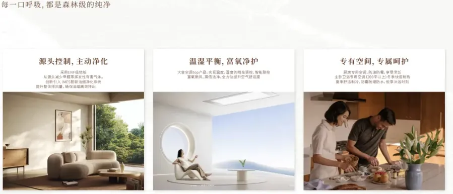 比如空气。 厨房采用iMES智联油烟系统,全屋主材达到ENF级(国内最高环保标准,甲醛释放量≤0.025mg/m³,比美国、日本标准都严)。