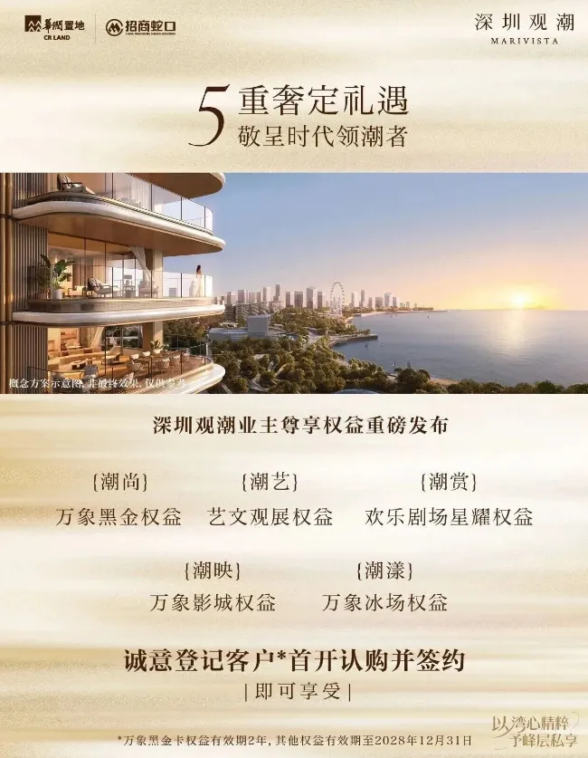 而且,华润还为深圳观潮的准业主提供了专属五重权益(诚意登记并认购签约的客户可享)。
