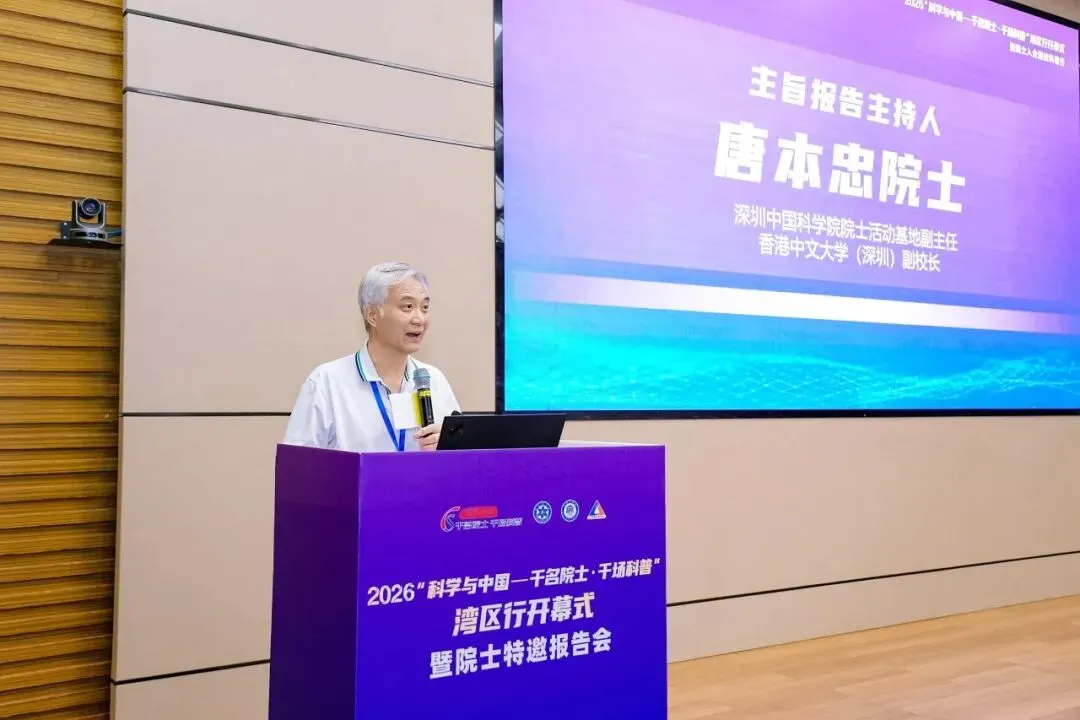 4月8日,2026“科学与中国——千名院士·千场科普”湾区行活动开幕仪式在深圳举行,15位两院院士齐聚中国科学院深圳先进技术研究院(简称“深圳先进院”),带来一场科普盛宴。中国科学院院士、深圳中国科学院院士活动基地主任、深圳先进院碳中和研究所所长成会明和中国科学院院士、深圳中国科学院院士活动基地副主任、香港中文大学(深圳)副校长唐本忠分别主持开幕仪式和主旨报告环节。深圳高校、科研机构、企业及社会公众200余人参加活动。