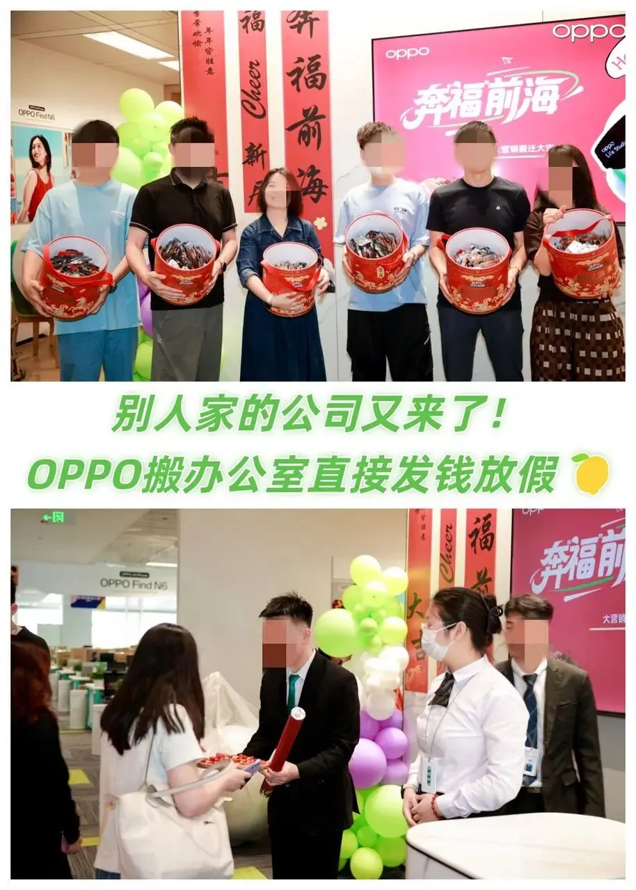 深圳OPPO员工集体换办公室,公司直接送上:1天搬迁假,1000元补贴
