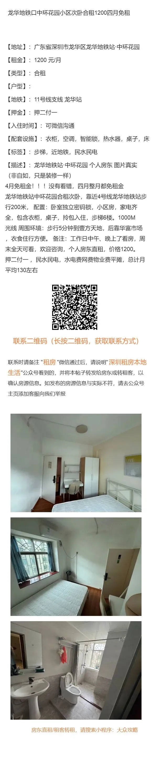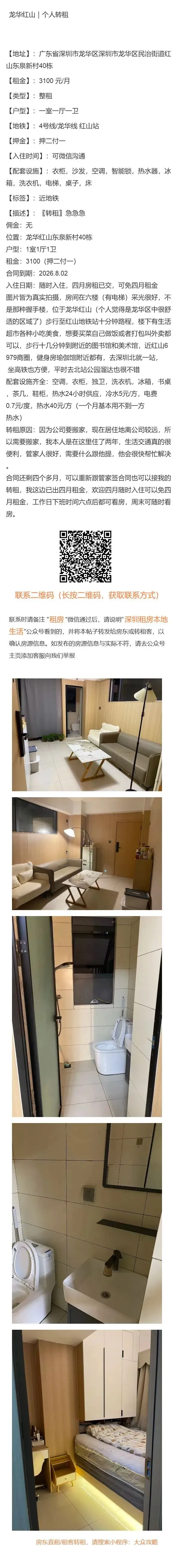 【深圳租房本地生活:免责申明】以上内容受用户委托发布,谢绝转载。房源信息的真实性、合法性由提供者负责,本公众号不声明或保证内容之正确性和可靠性,深圳租房需谨慎,请先核实出租人身份,仔细阅读租房合同,切勿轻易转账、交订金等,房屋出租过程中产生的一切问题,与本公众号无关。【深圳租房本地生活:特别申明】深圳租房本地生活没有任何线下业务人员,请勿轻信冒认我司线下工作人员及电话沟通人员,我司目前唯一对外沟通窗口为公众号主页客服微信:Hey_Beijinger