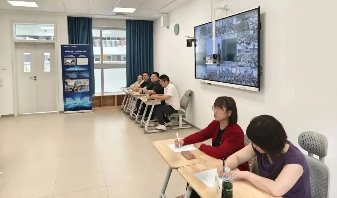 培训期间,教师团连续多日走进云端课堂,现场观摩了多学科、多年级的示范课。七年级语文《骆驼祥子》:主讲赵英屏老师以问题链驱动思维,辅讲教师实时关注学生状态,双师协同、跨班互动,让整本书阅读在云端焕发新生。八年级语文《小石潭记》:田娟老师借助英飞画布与实时投屏技术,带领学生在文本细读与山水画面之间穿梭,实现了文言文教学的沉浸式突破。七年级数学《平行线的拐点问题》:杨威老师通过多校连线、实时作答与典型错题投屏,课堂节奏紧凑、反馈精准,充分体现了数据驱动教学的效率优势。