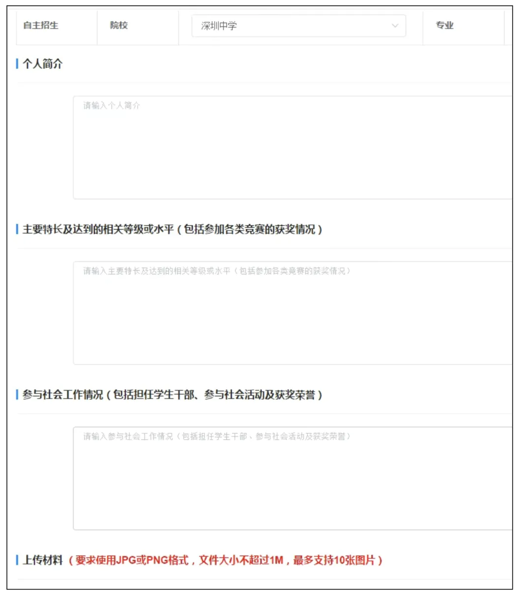 一类自主招生的材料主要是线上填报信息(如下表格)和线下补充证明文件。
