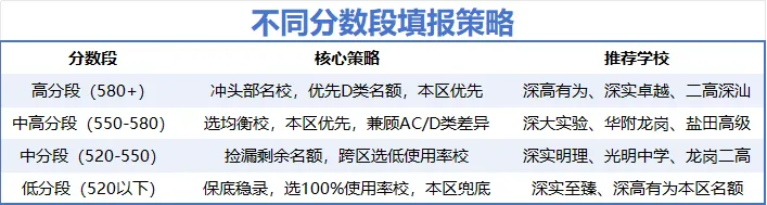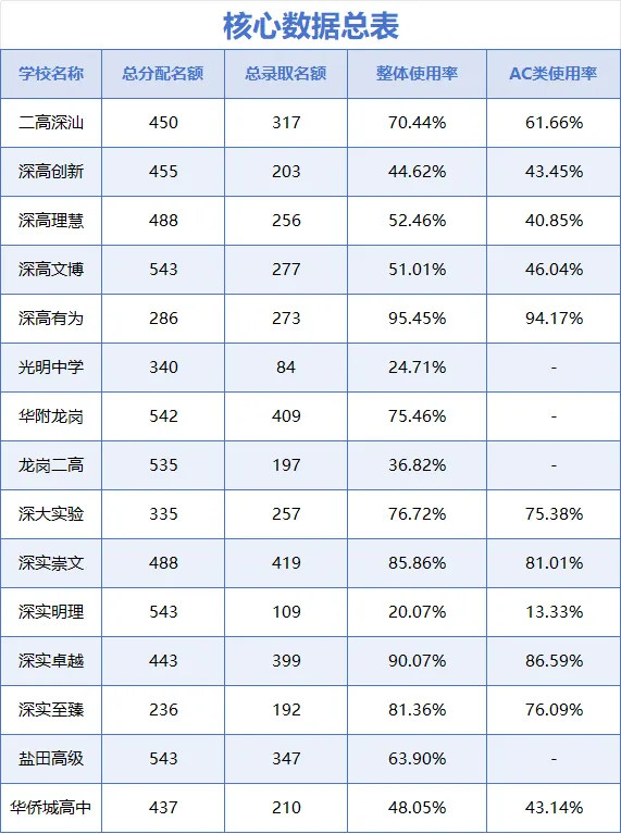 均衡型学校:二高深汕、深大实验、华附龙岗,整体使用率70%左右,适合中等分数考生稳妥填报