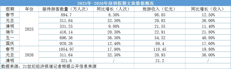 4月6日,深圳市文体广电旅游局公布的数据显示:4月4日至6日清明假期,深圳共接待游客321.6万人次,旅游收入达21.20亿元。