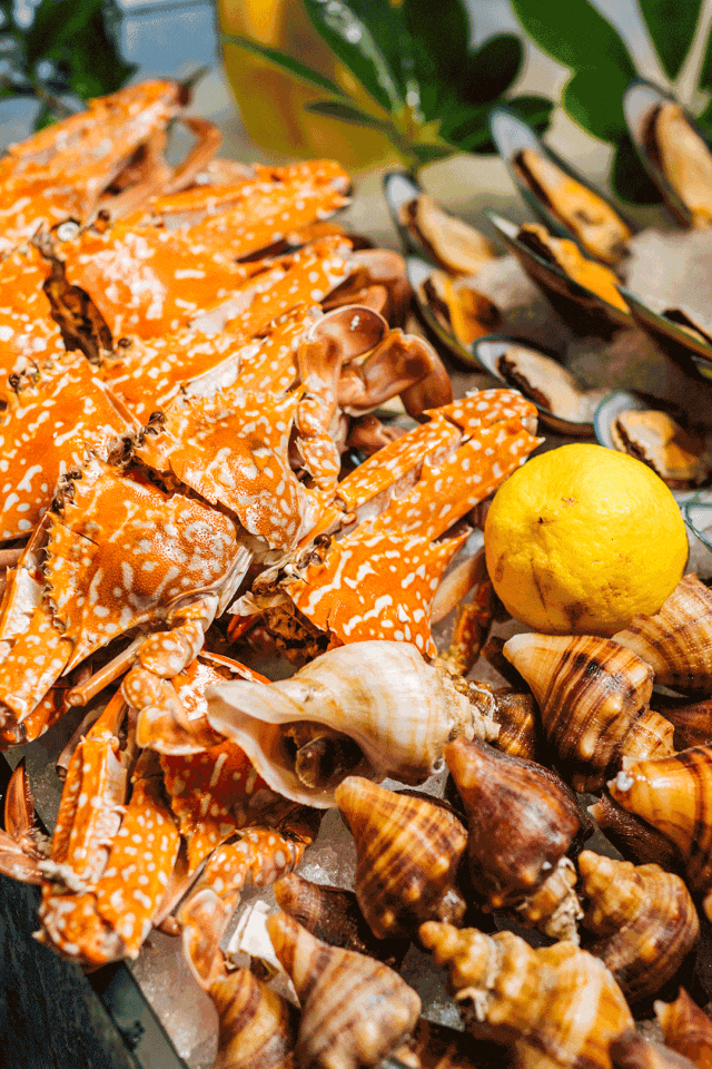 三点蟹、吞拿鱼、三文鱼、北极贝等