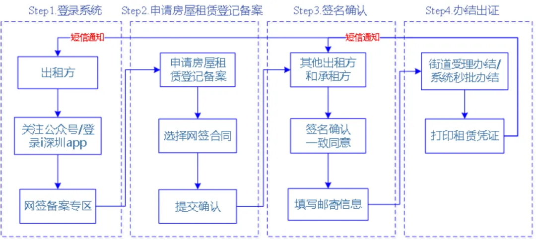 街道办结,短信通知所有出租方/承租方办理结果,进入“进度查询”,查看办理结果