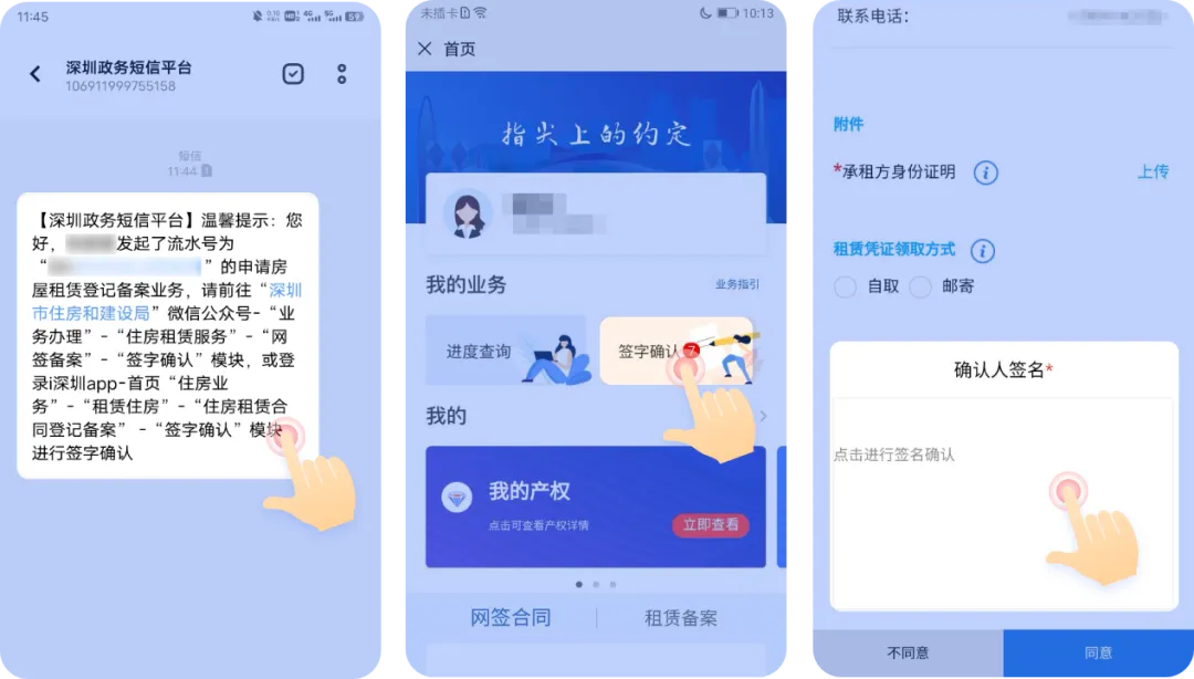 其他出租方/承租方收到确认短信,进入“签字确认”,找到对应流水号,签名确认