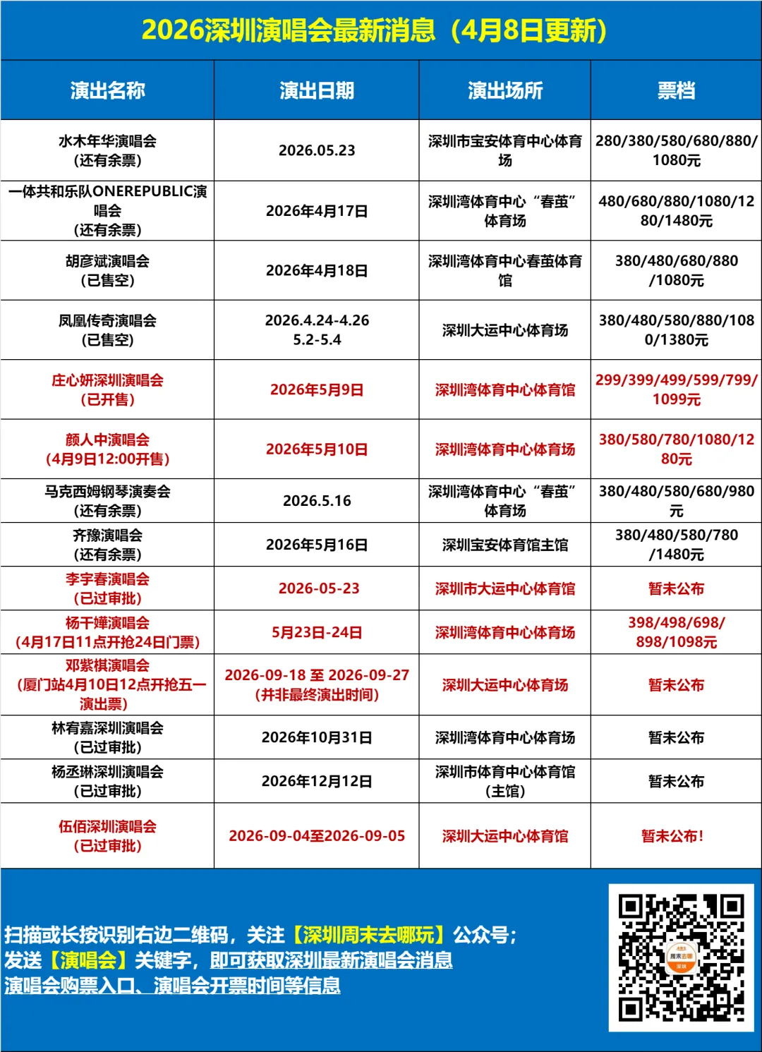回复【演唱会】即可获取2026深圳演唱会最新消息、演唱会开票时间、购票入口、票价、演出时间、地点等内容