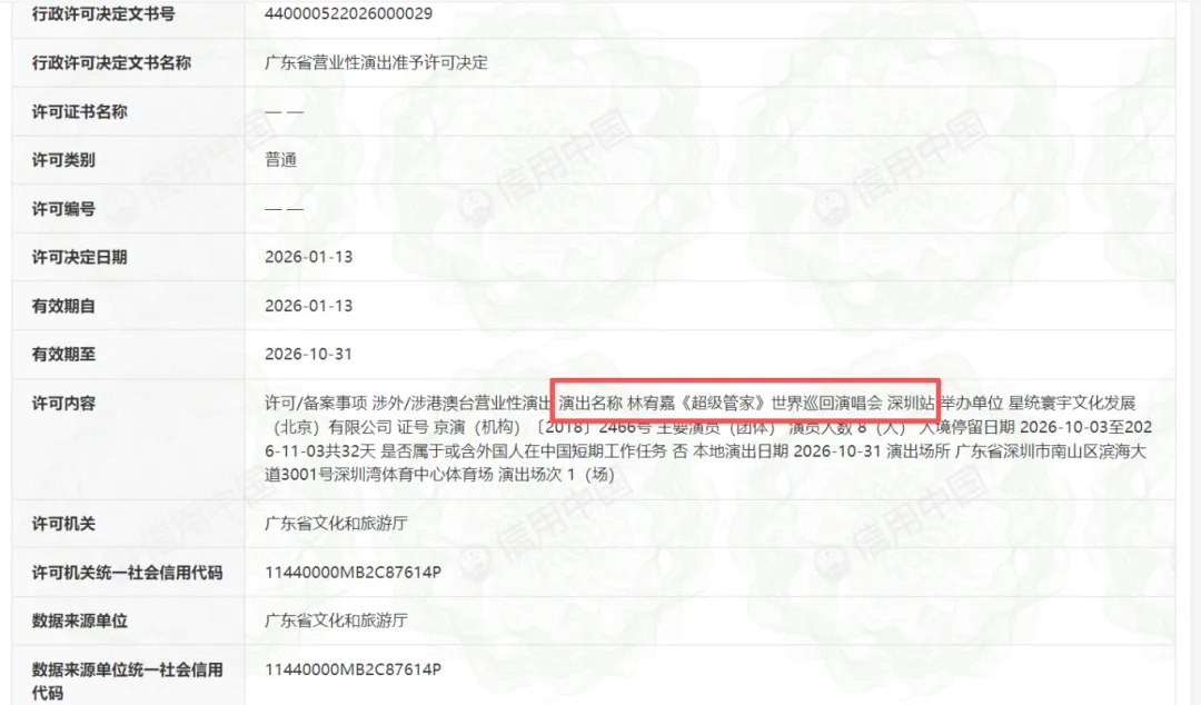 ✅演出名称:林宥嘉《超级管家》世界巡回演唱会深圳站