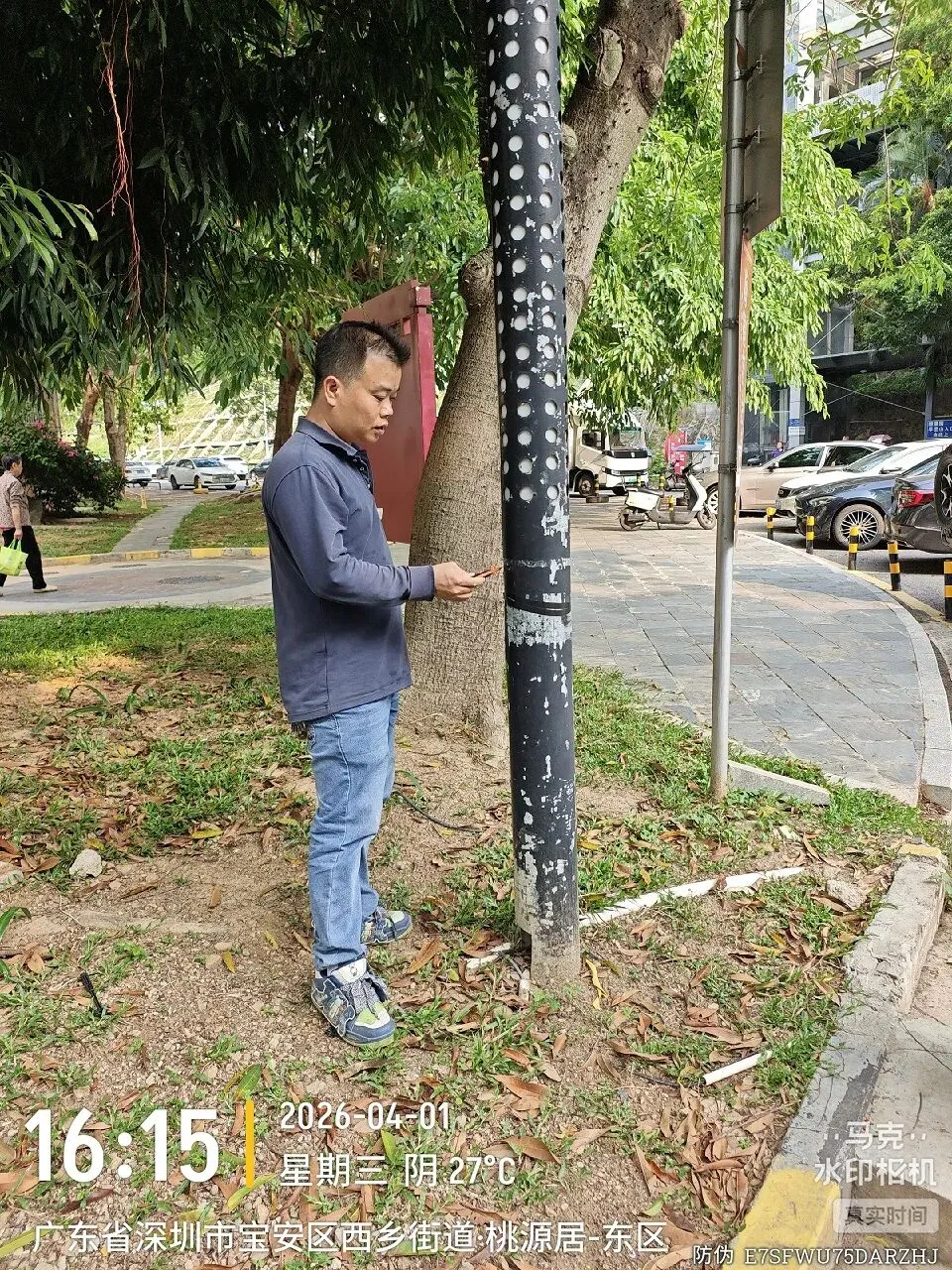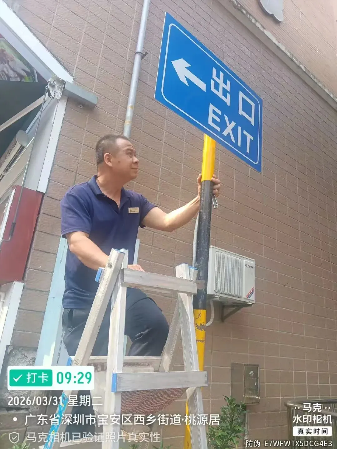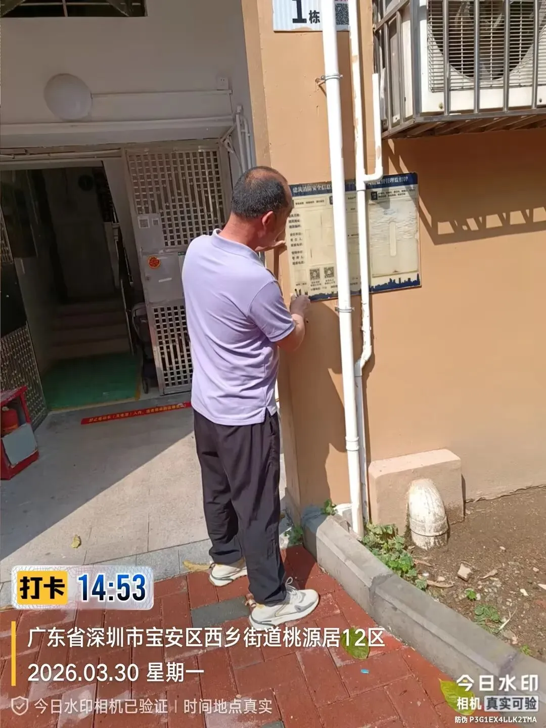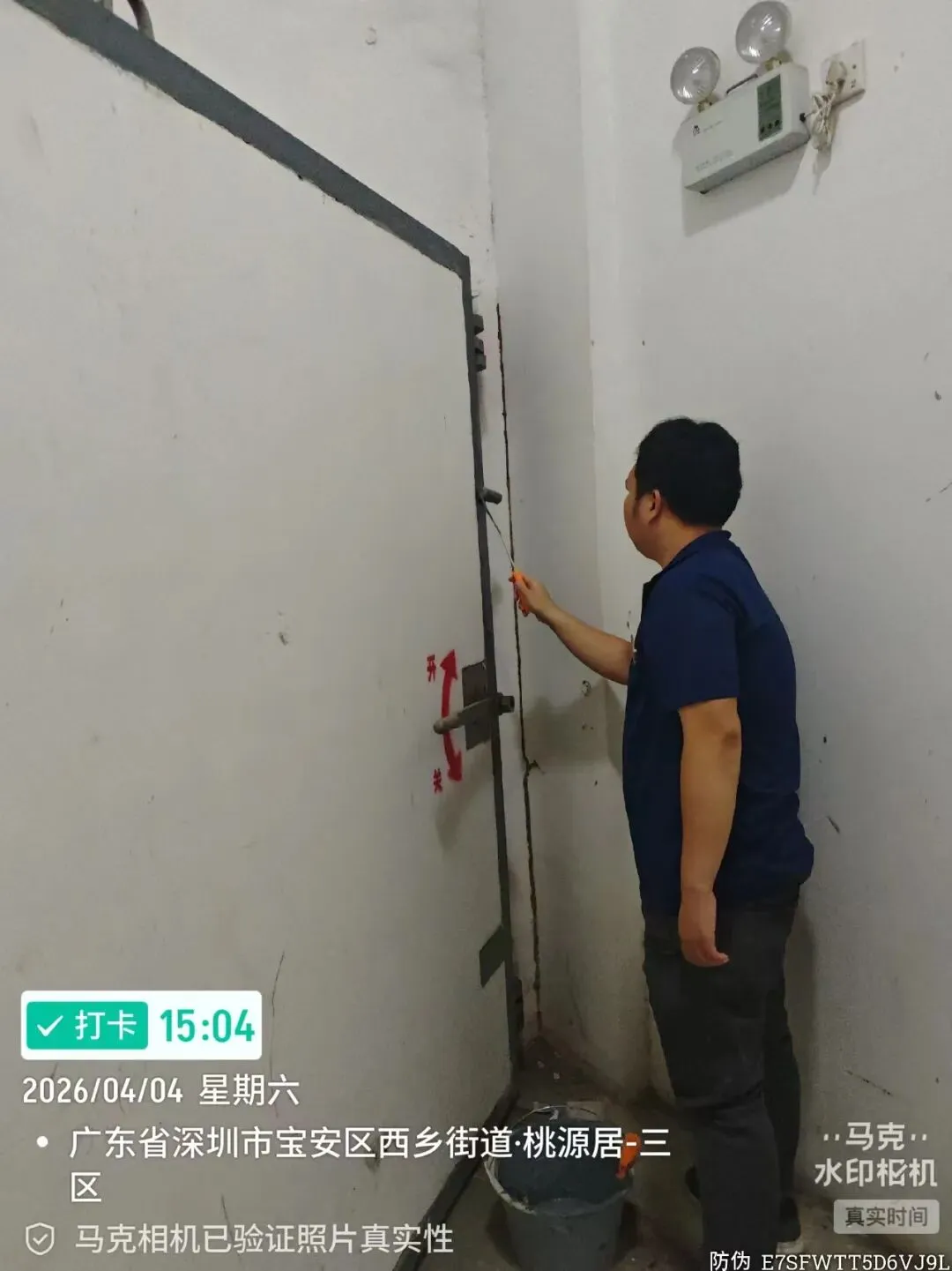 对室外的微型消防柜进行检查。