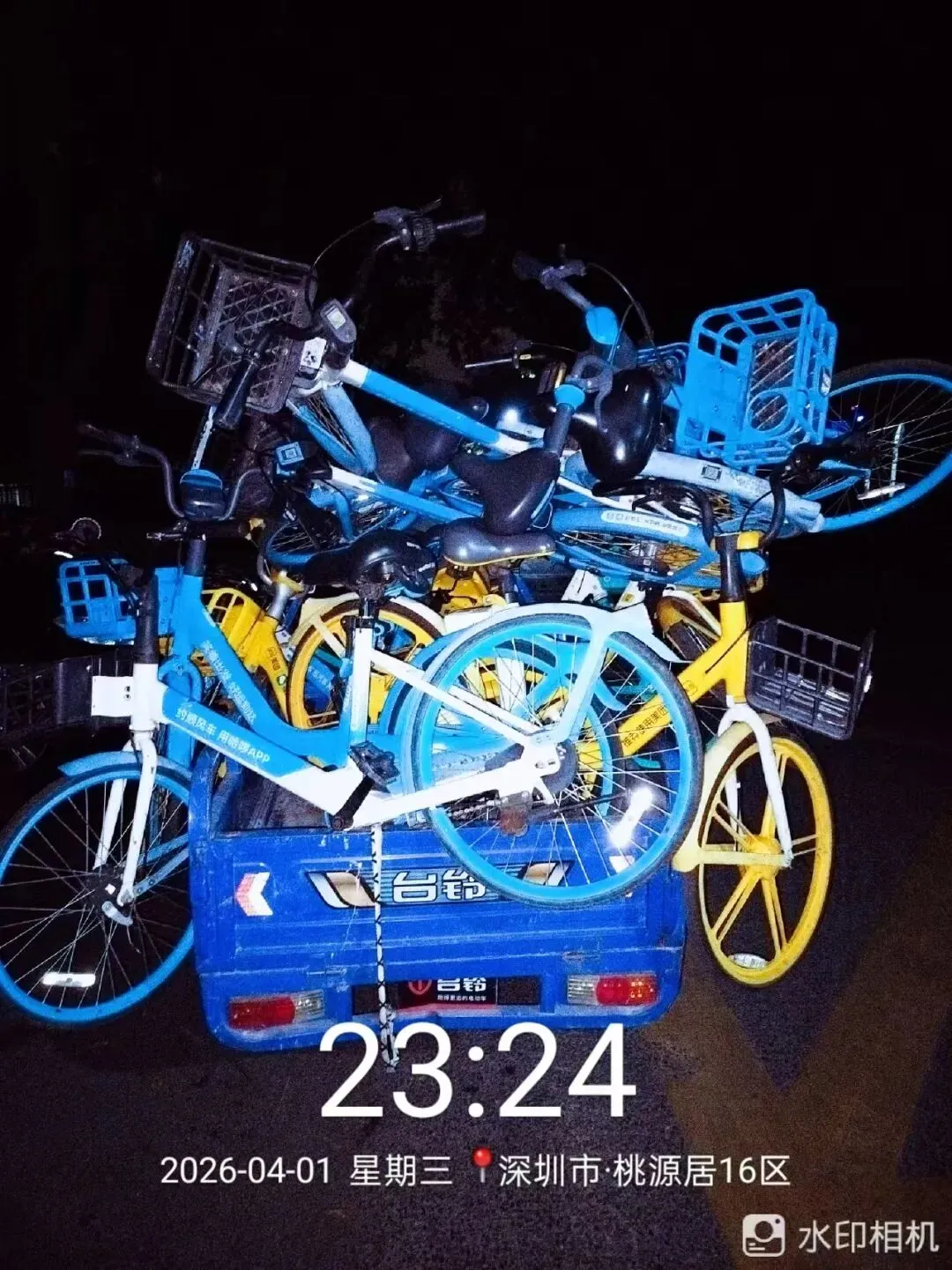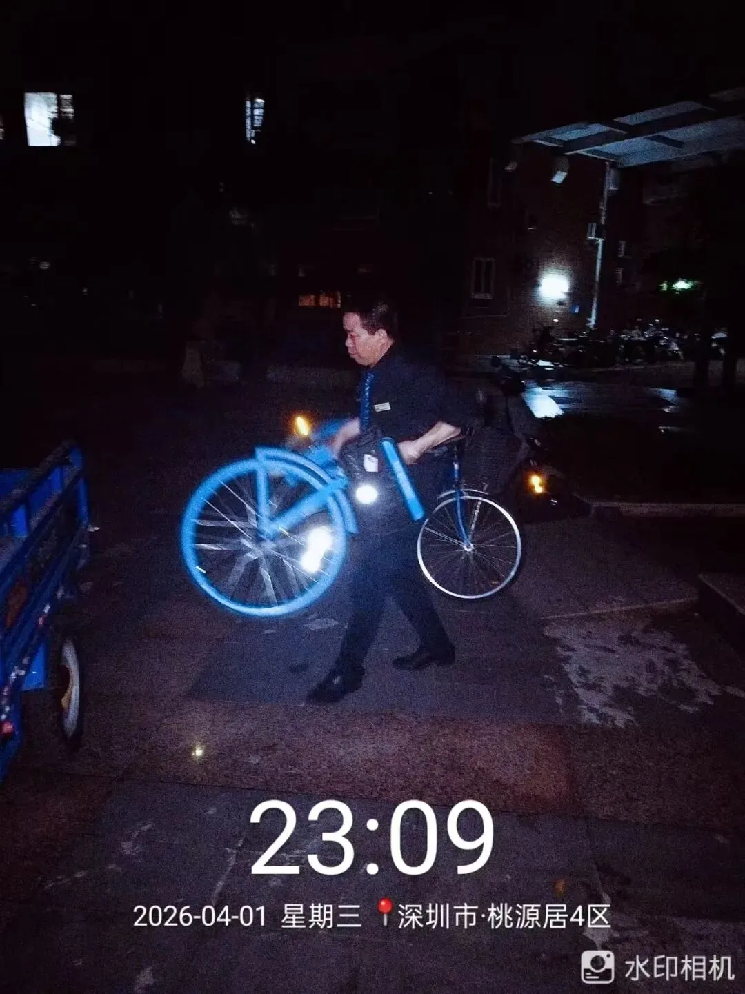 清理小区的共享单车,统一摆放到指定位置。