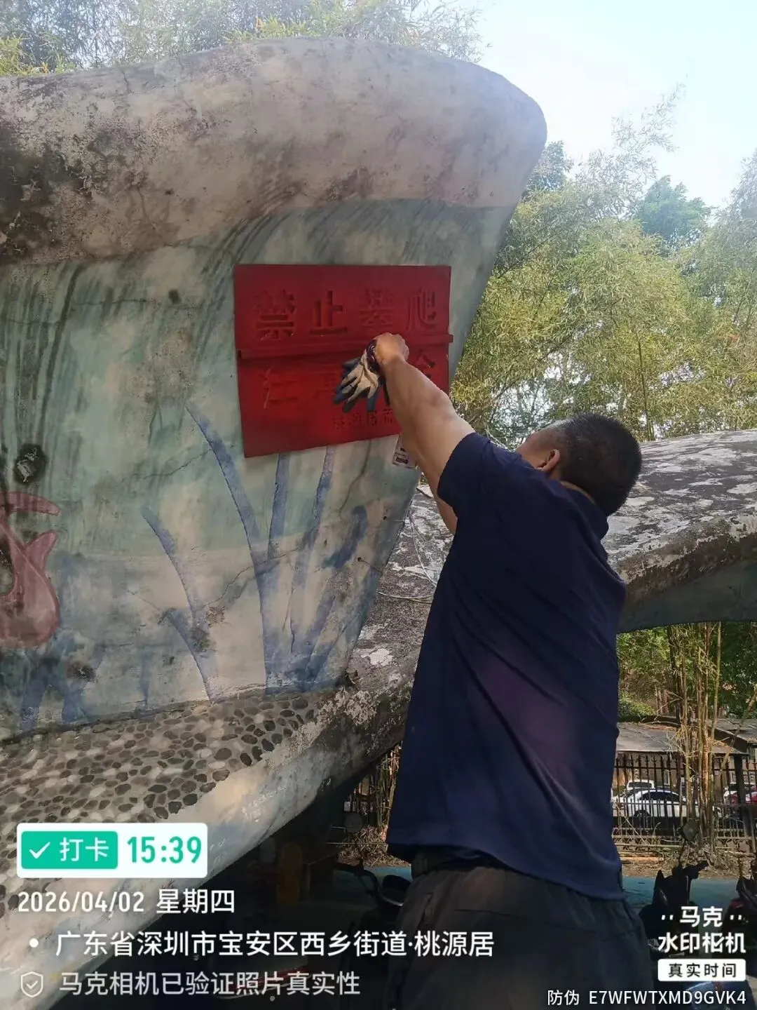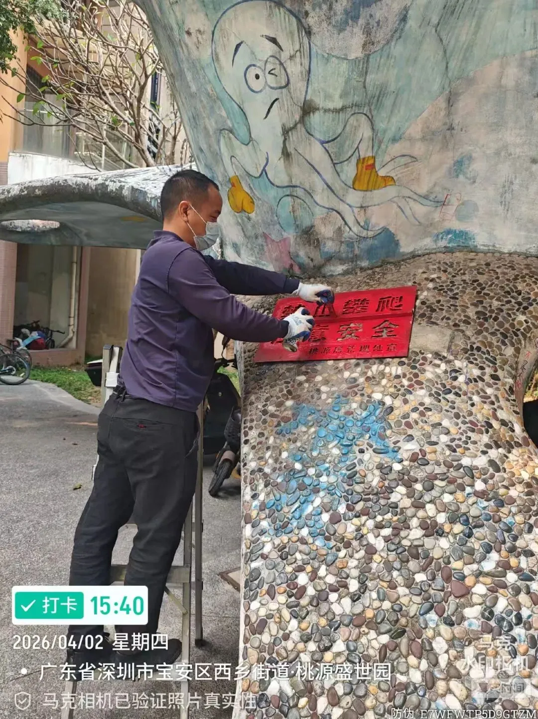 喷禁止攀爬的温馨提示。