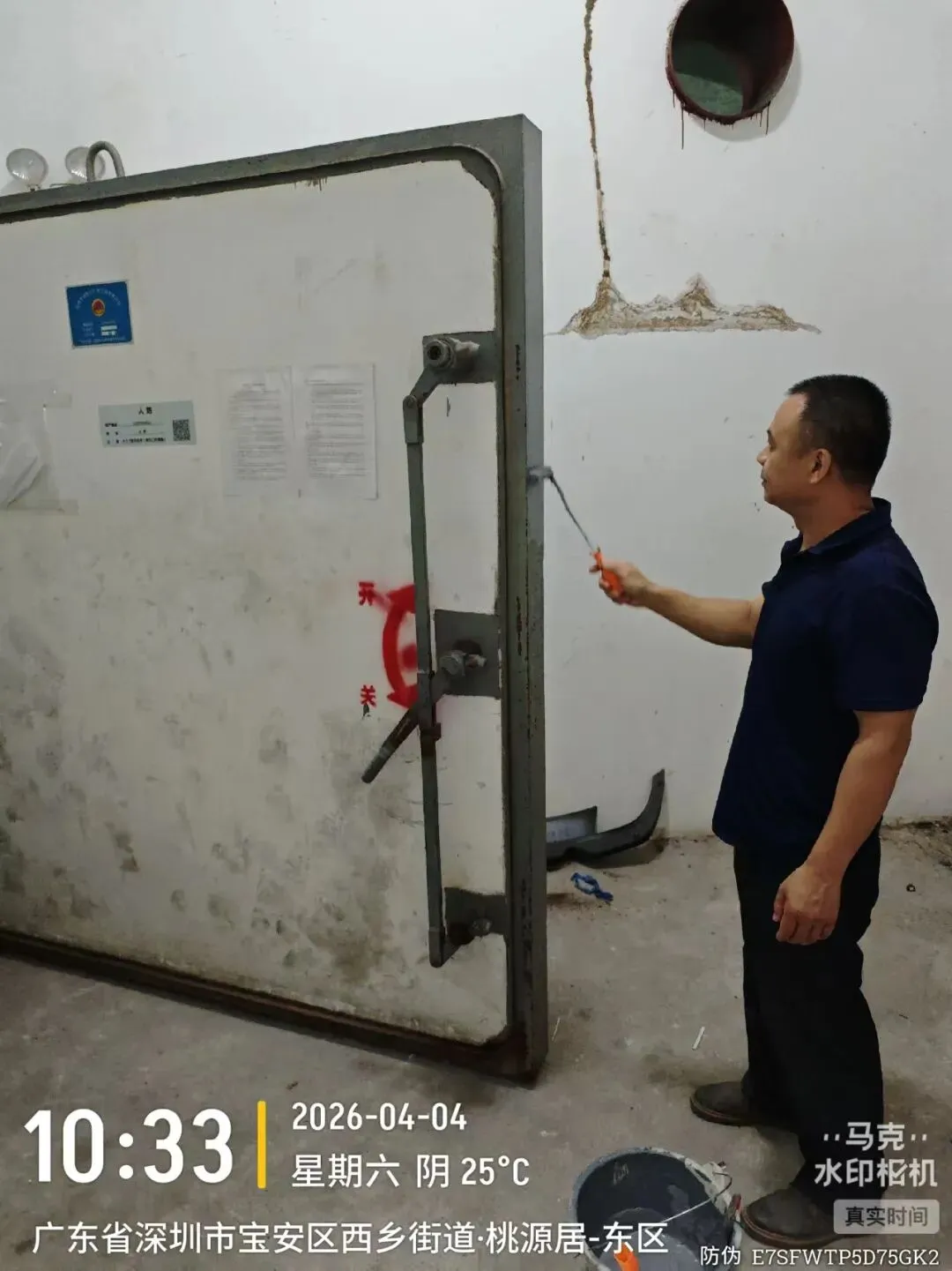 车库人防火门除锈刷漆。