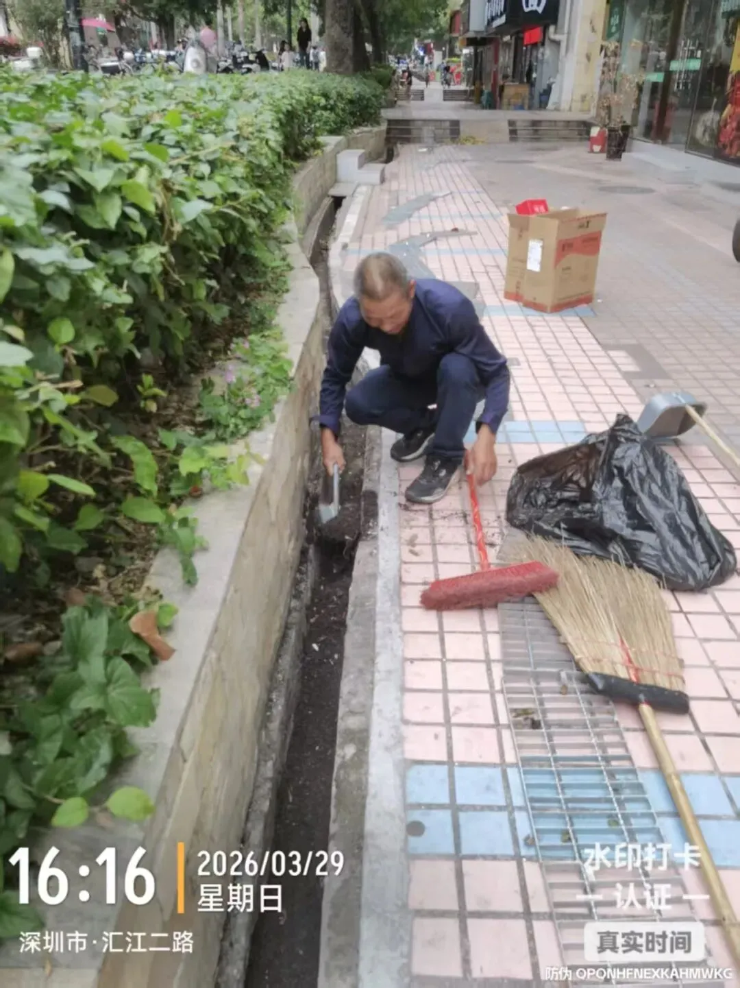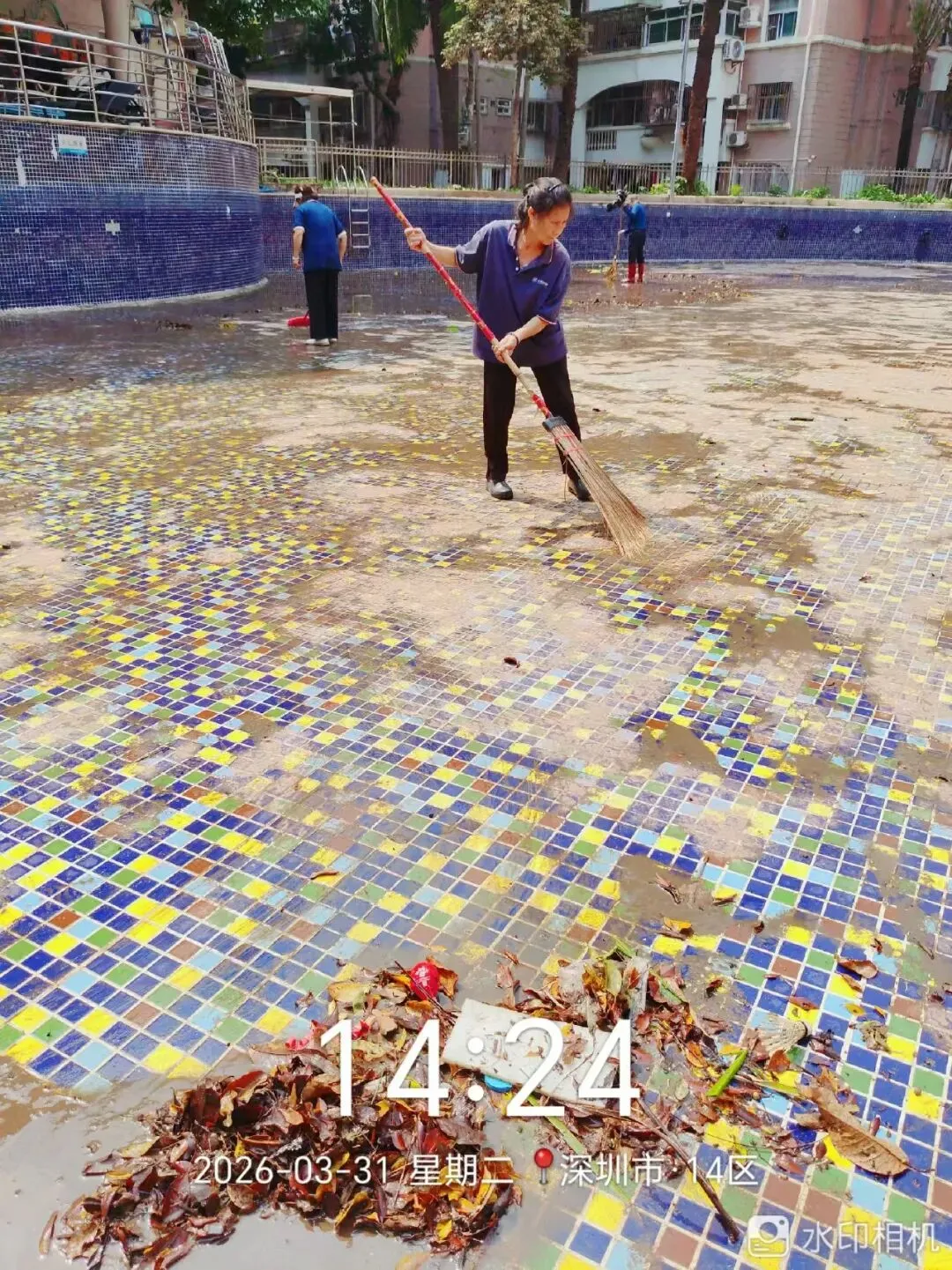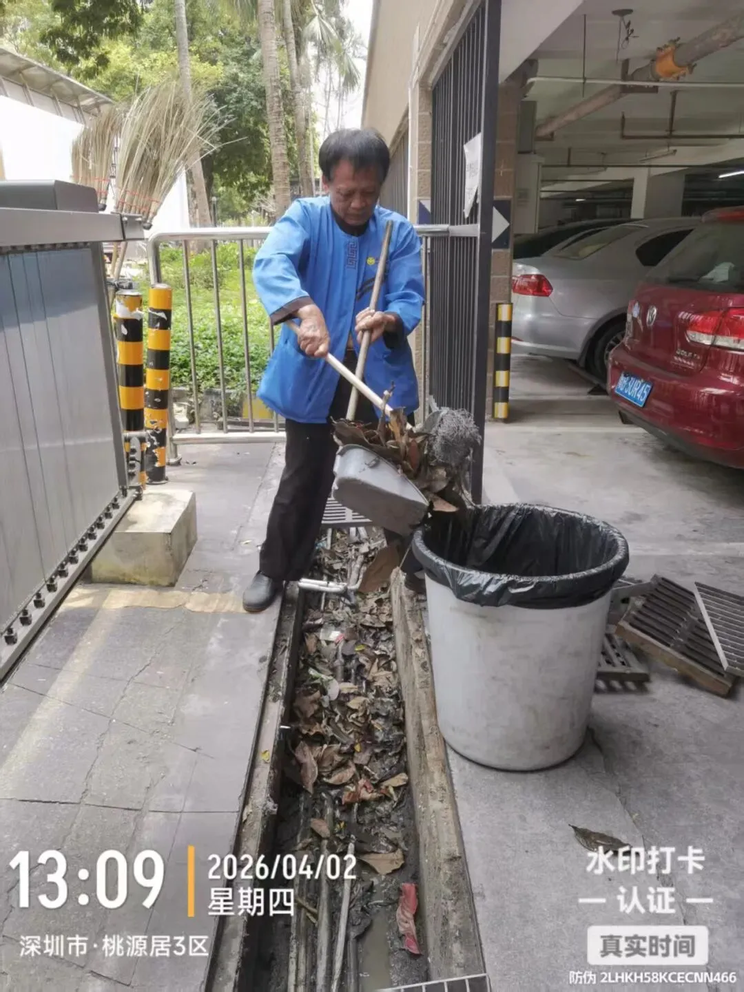 清理排水沟落叶、淤泥。