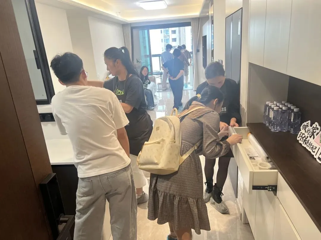 300人次蜂拥而至,样板间成深圳装修“打卡地” 活动当天,哈罗铝家居深圳样板间尚未正式开放,便已有业主提前到场等候。上午9点起,咨询电话接连不断,展厅内更是座无虚席——从新婚夫妻为新家甄选环保定制方案,到三代同堂的家庭聚焦防潮耐用需求,再到装修公司的合作方前来考察对接,不同年龄段、不同需求的业主齐聚现场,掀起一阵全铝定制热潮。 业主们围绕全铝衣柜、橱柜、阳台柜等核心产品,仔细查看板材质感、询问环保参数、体验使用细节,现场专业顾问一对一讲解,耐心解答“甲醛含量”“防潮性能”“使用寿命”等核心疑问。不少业主实地参观后直呼:“原来全铝家居不仅环保,颜值还能这么高,完全打破了对金属家具的刻板印象!” 此次活动的超高人气,不仅是深圳业主对健康人居的迫切追求,更是对哈罗铝家居产品实力与品牌口碑的高度认可。