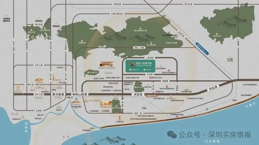 ·多维交通:双地铁口(2/8 号线海山站 & 盐田港西站,约900 米直达),2 站至罗湖、10 站达福田;深盐路、惠深沿海高速、春风隧道三大快速路网,叠加沙头角口岸(重建中)、莲塘口岸双口岸,轻松实现深港双城生活。