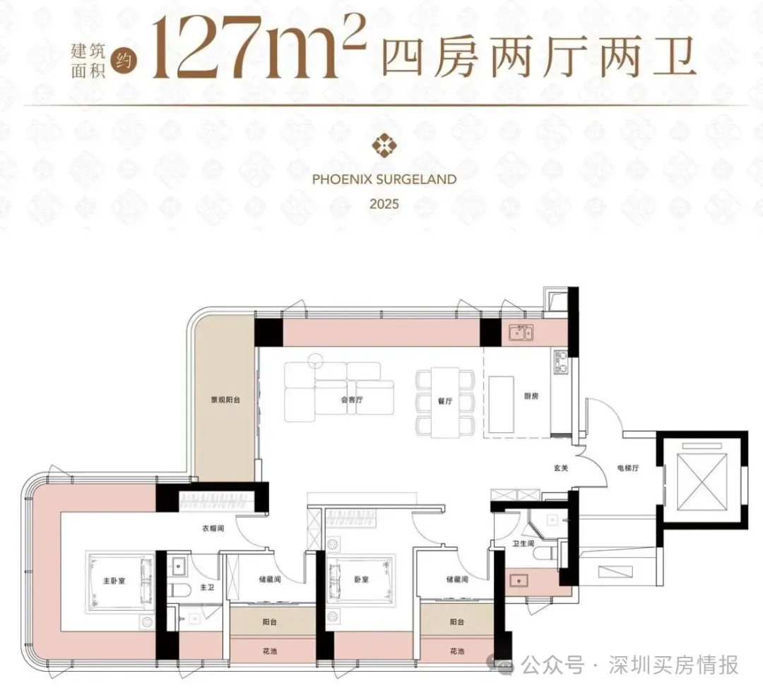 【梯 户 比】4梯5户(低区)/4梯4户(高区)、约127㎡以上专梯专户