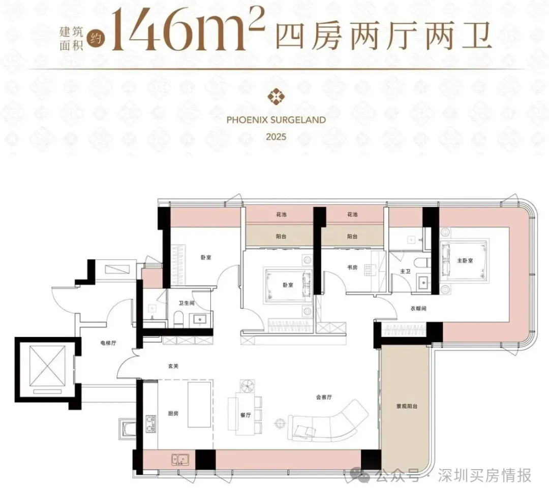 真纯粹:约127-300㎡新规改善大宅,四房占比超87%,主力户型专梯独户,尽享纯粹圈层生活;