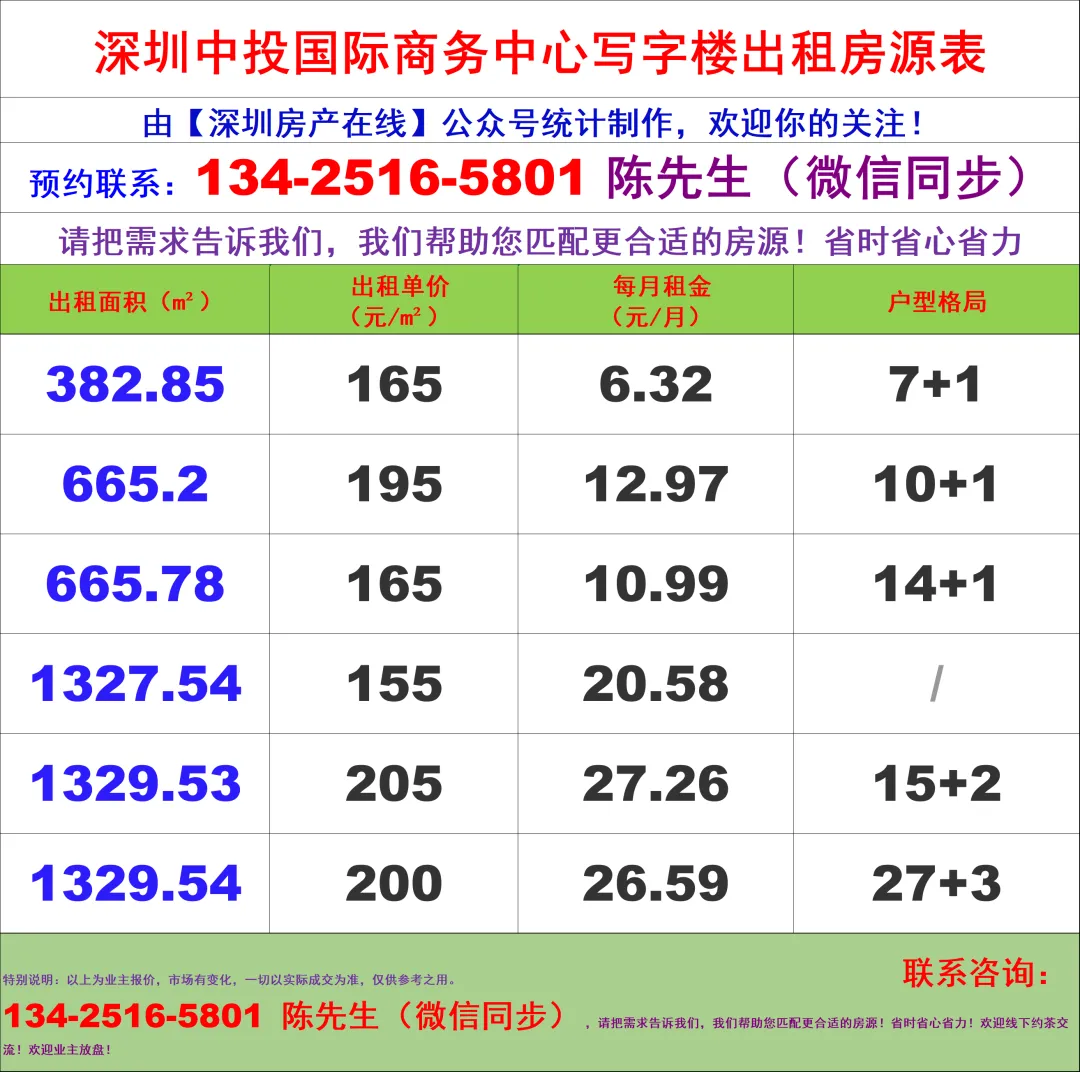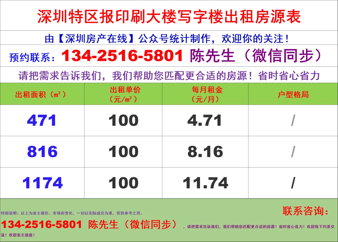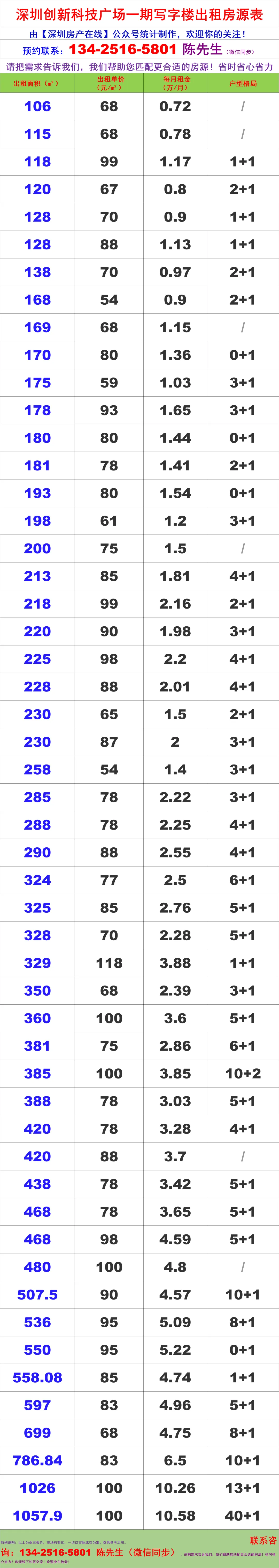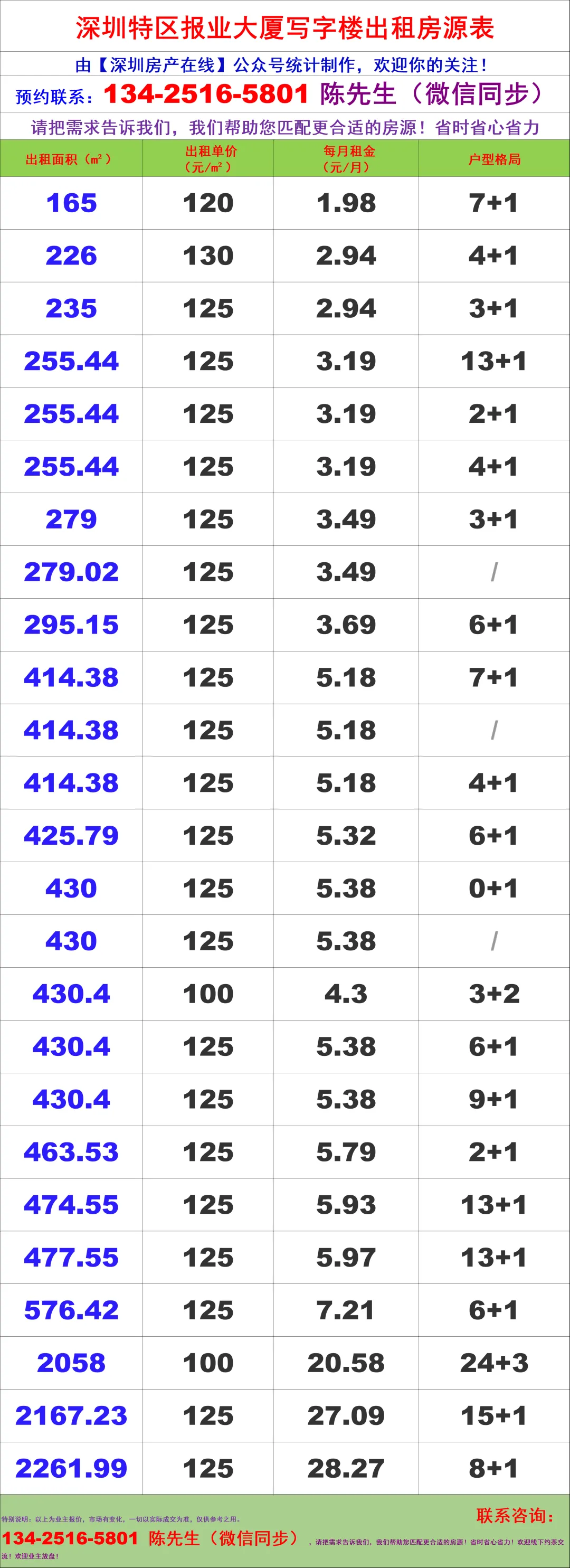 【深圳房产在线】陈经理写字楼租售团队:134-2516-5801 (微信同步)