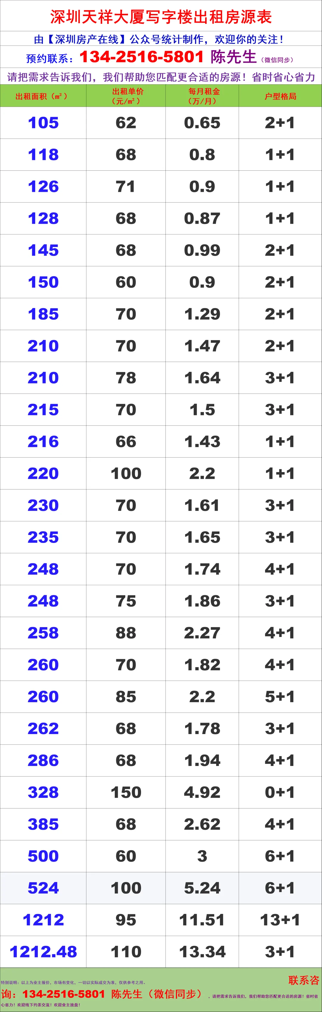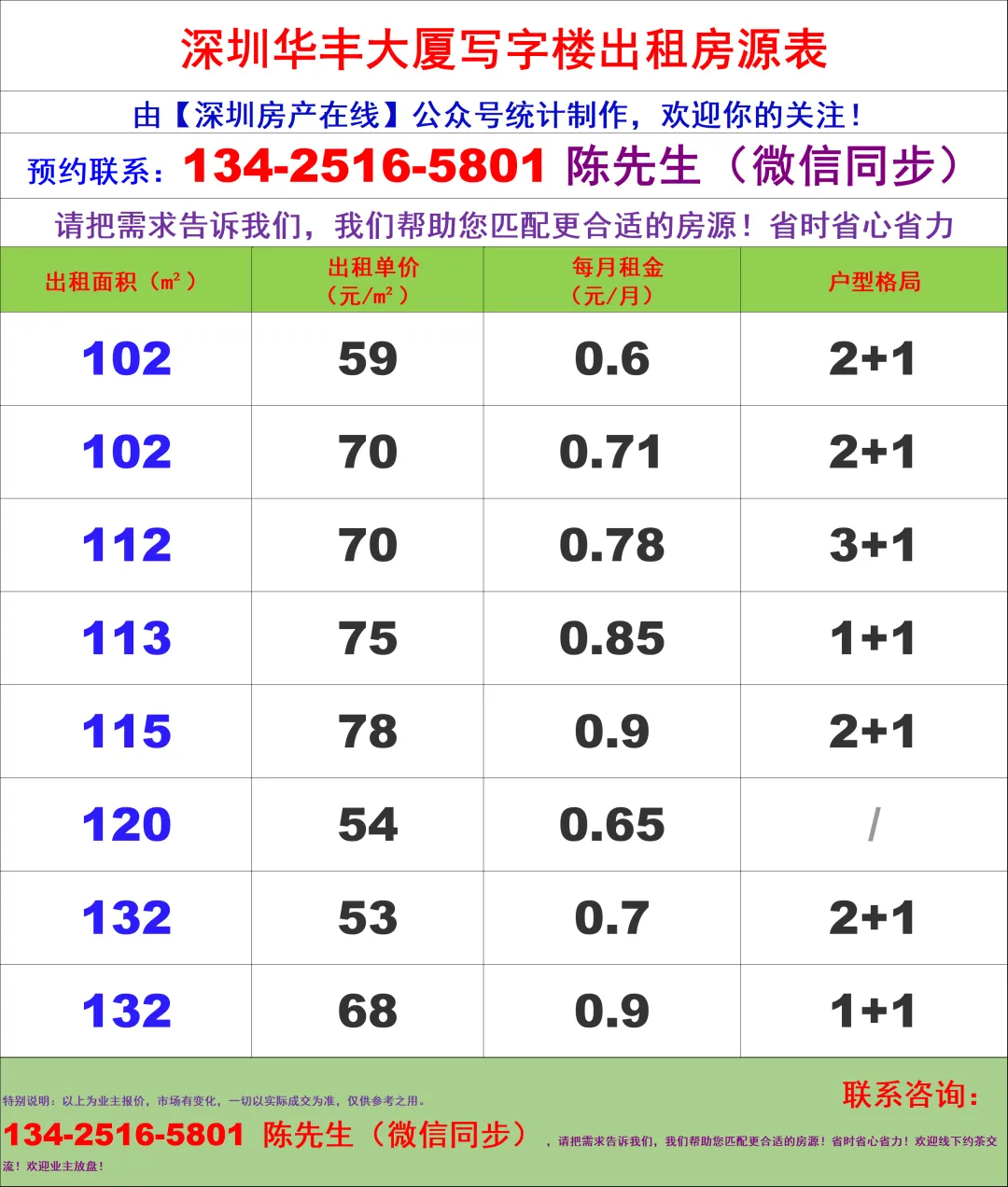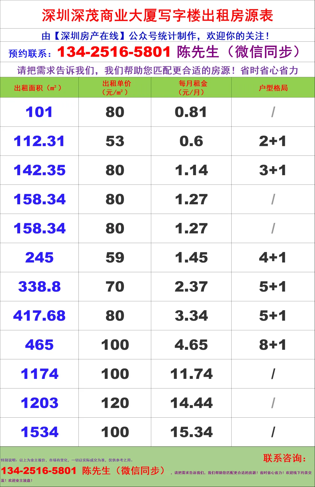【深圳房产在线】陈经理写字楼租售团队:134-2516-5801 (微信同步)