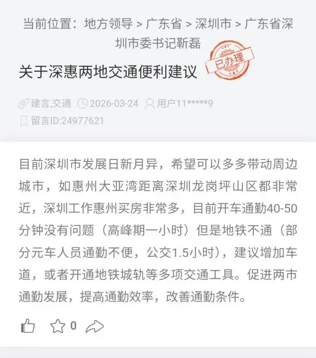 事关深惠“跨市地铁”,官方回复来了→近年来
