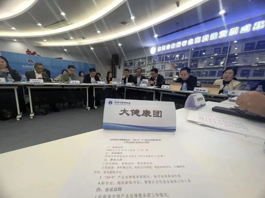 近日,深圳市律师协会组织召开产业法律服务团工作汇报会,市律协会长张斌、副会长章成,业务创新与发展工作委员会主任李军强等协会领导,听取各产业法律服务团工作情况汇报。