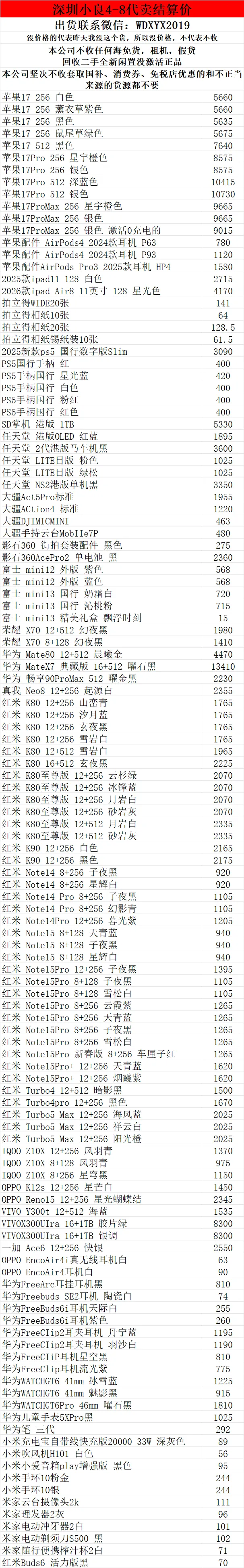 >深圳小良2026.4.8电子产品代卖结算价(美妆价格小程序查看)