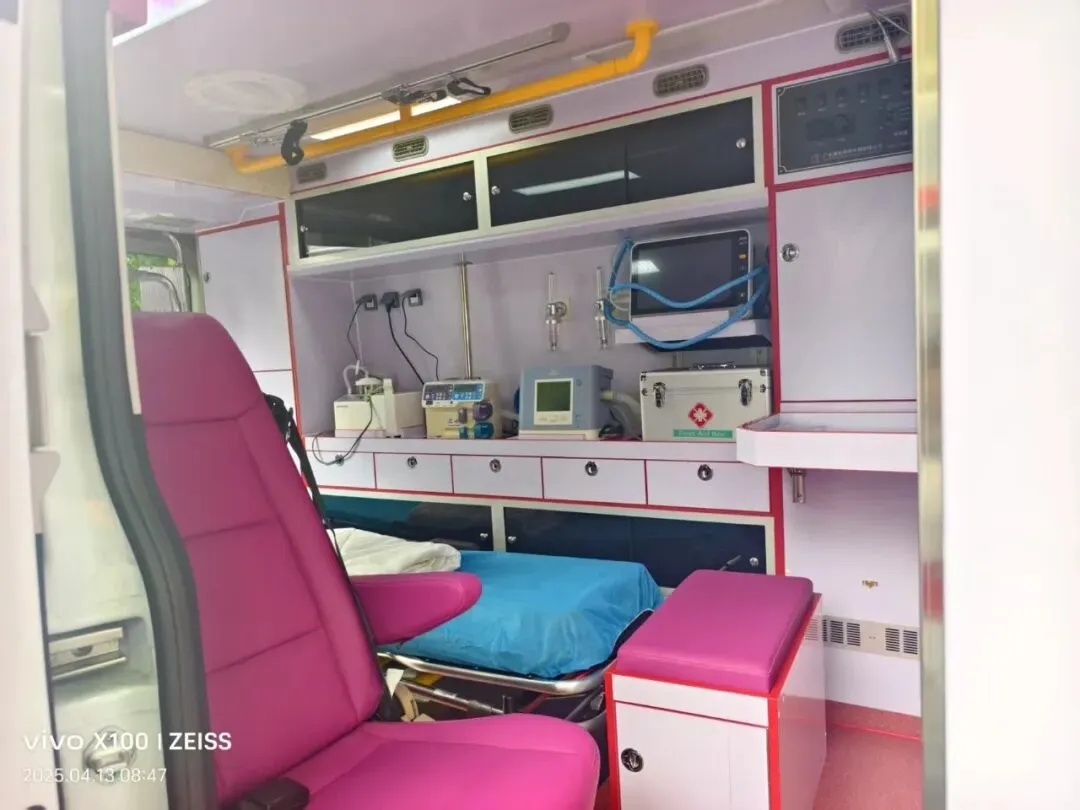 ICU级设备支持。救护车配备多功能呼吸机、心电监护仪、除颤仪、输液泵等专业设备,满足各类重症患者的转运需求,打造移动的ICU监护环境。