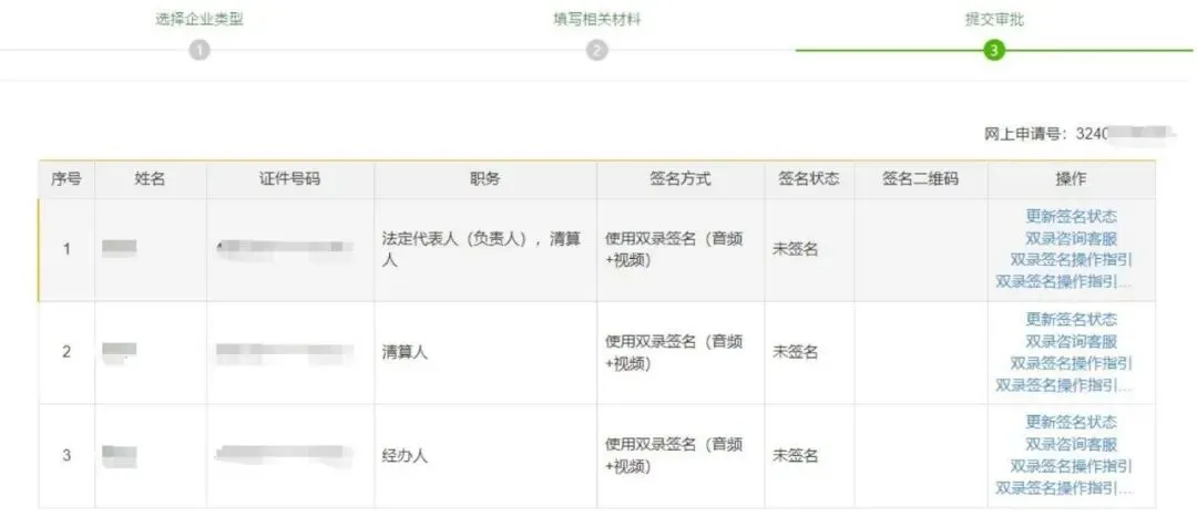 提交成功之后 ,待办中业务最新状态 ,变为“ 已申报 ”,全流程业务提交成功后, 3 个工作日 内办结 ,如有疑问请致电 12315,或者咨询审批部门。