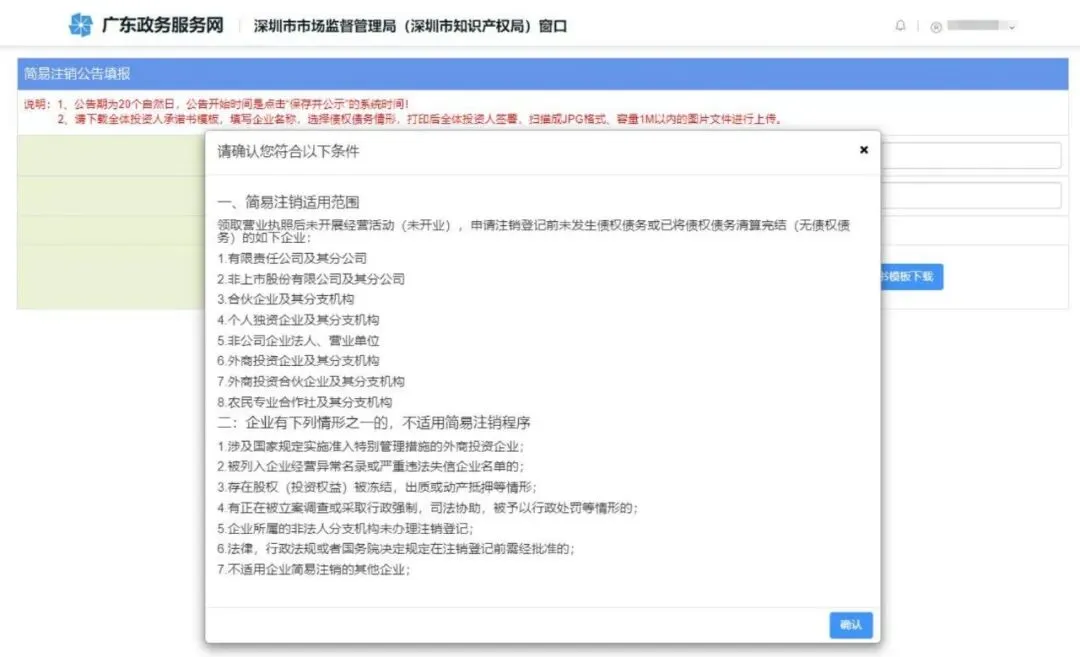 4.确认简易注销符合条件 ,点击“确认 ”。