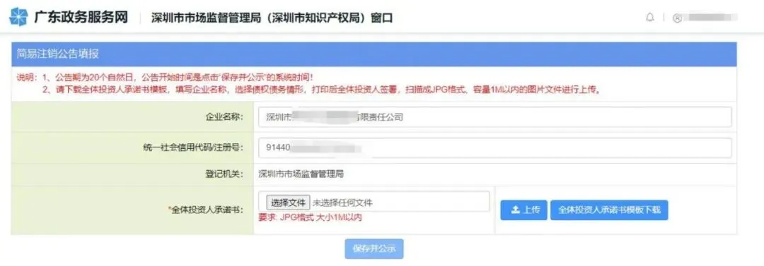 请先办理简易注销公告(注:需由法定代表人的个人账号发布简易公告),发布简易注销公告达到20 天( 自然日 )后方可再登录商事主体登记注册系统办理“ 简易注销 ”业务 。操作流程如下: