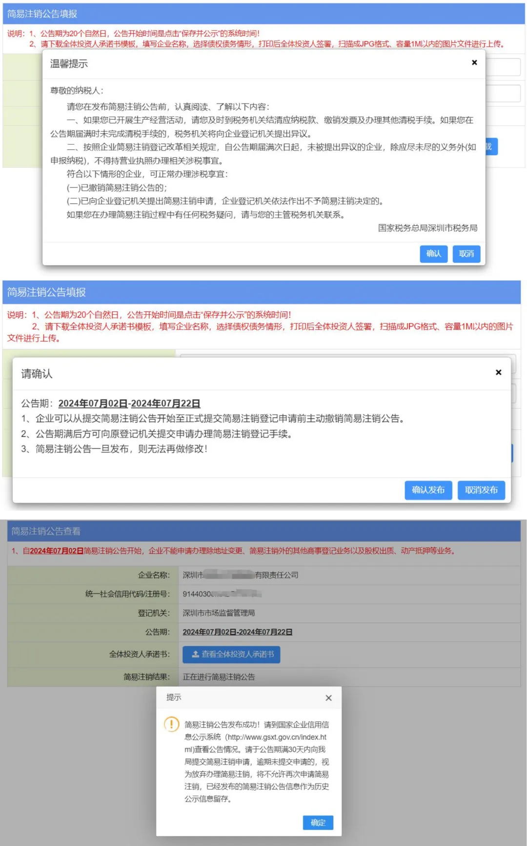 7.简易注销公告发布成功后 ,公告信息将同步到国家企业信用信息公示平