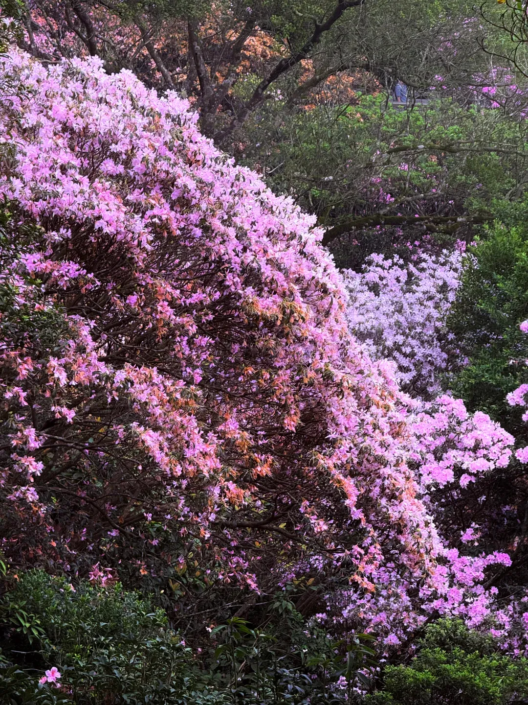 当所有人都把目光聚焦在樱花时,深圳的梧桐山已被染成一片粉紫色的云霞。漫山遍野的毛棉杜鹃,不是一树两树的点缀,而是整座山的盛放——像瀑布倾泻,像云雾缭绕,像春天打翻了调色盘。