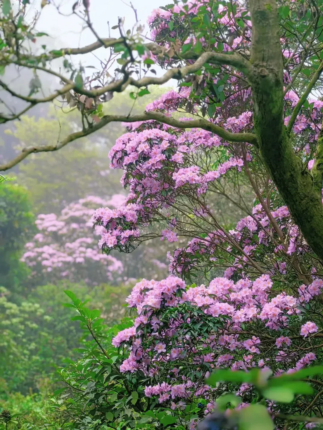 山间薄雾轻绕,花枝从头顶垂落,人在花下走,如在画中游。这里的春天不需要滤镜,每一帧都是手机壁纸;这里的浪漫不需要门票,只需拾级而上,便能与满山春色撞个满怀。